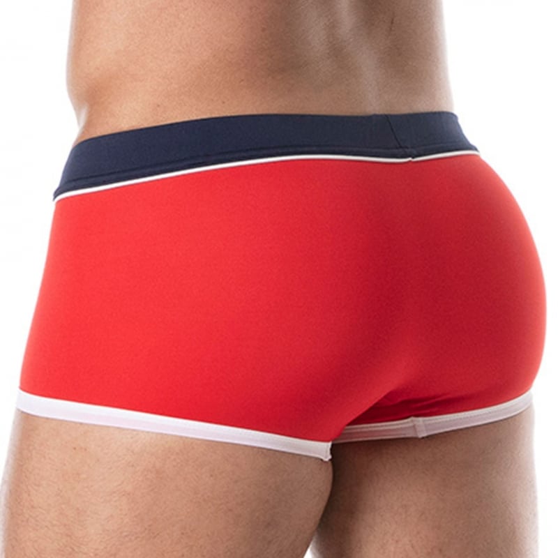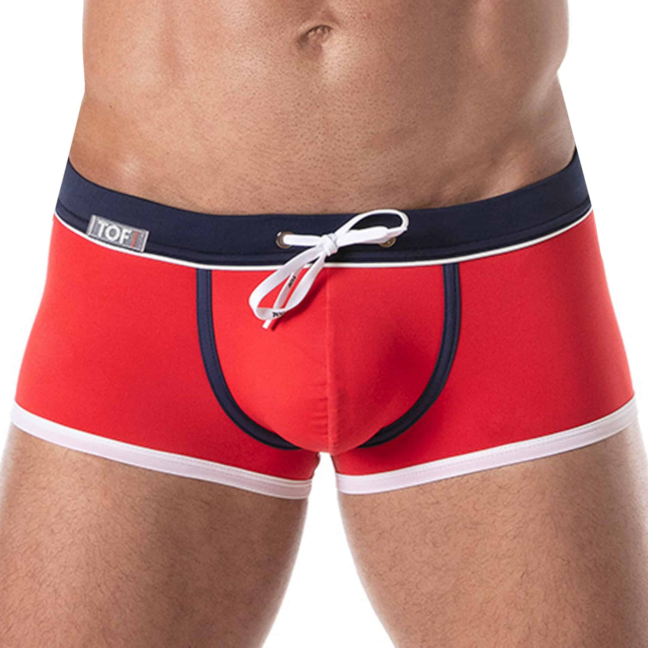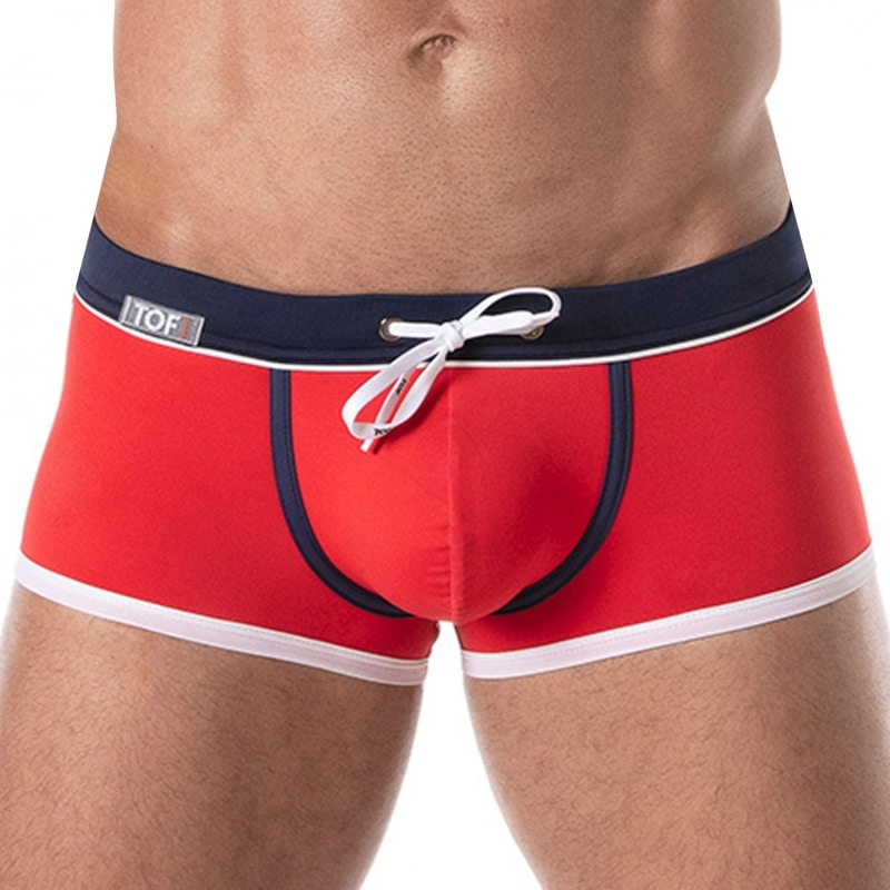 Boxer de bain en microfibre italienne, extensible et légère. Coupe taille basse, courte et ajustée. Sans couture sur les côtés ni sur les fesses. Grande poche frontale doublée. Ceinture élastique avec cordon de serrage. Etiquette TOF Paris en silicone. Fabrication française.