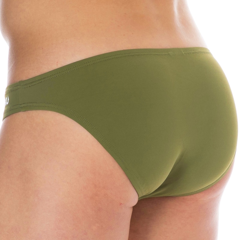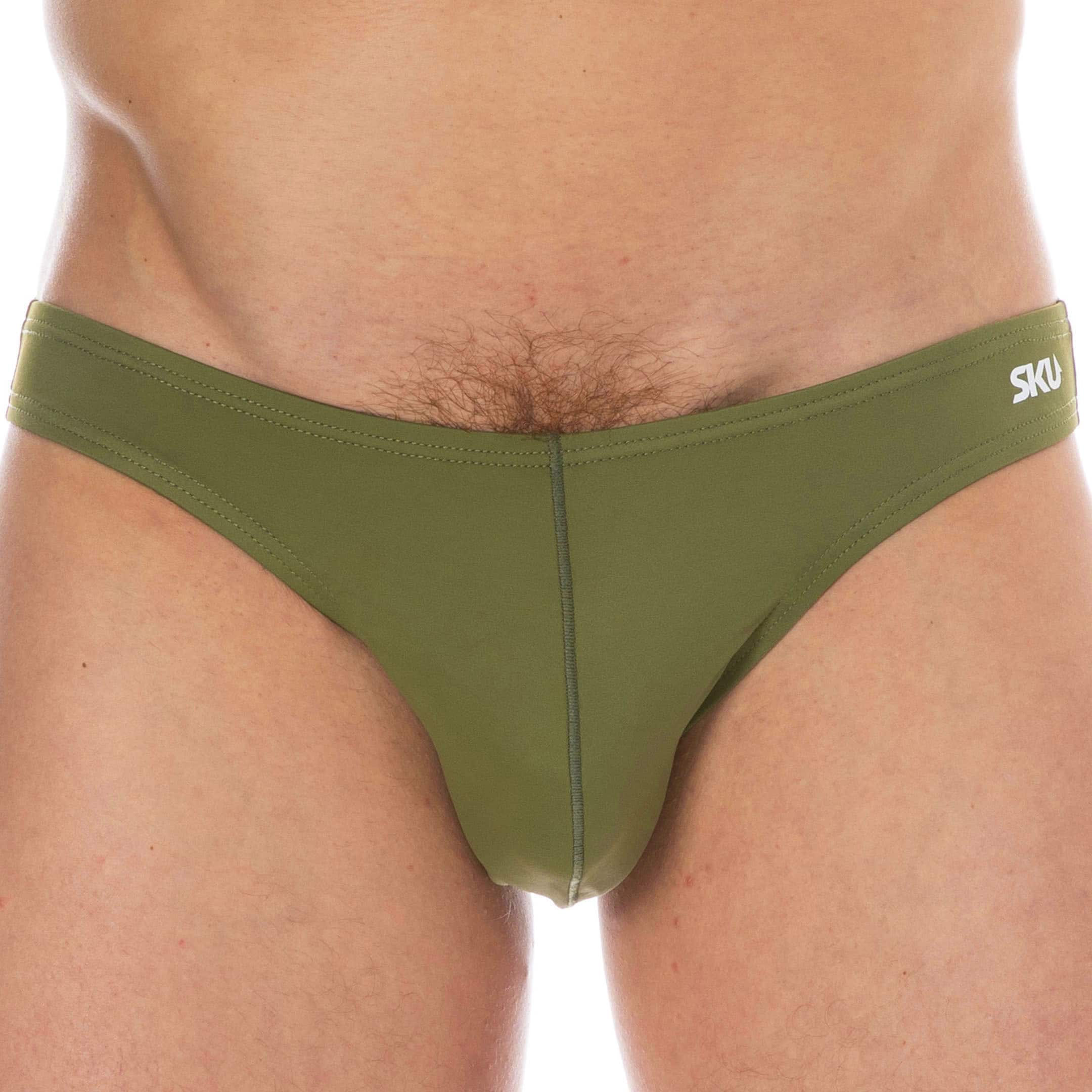Mini slip de bain en microfibre séchant rapidement. Coupe taille basse très ajustée. Poche frontale non doublée. Logo SKU imprimé sur la hanche gauche. Fine ceinture élastique.