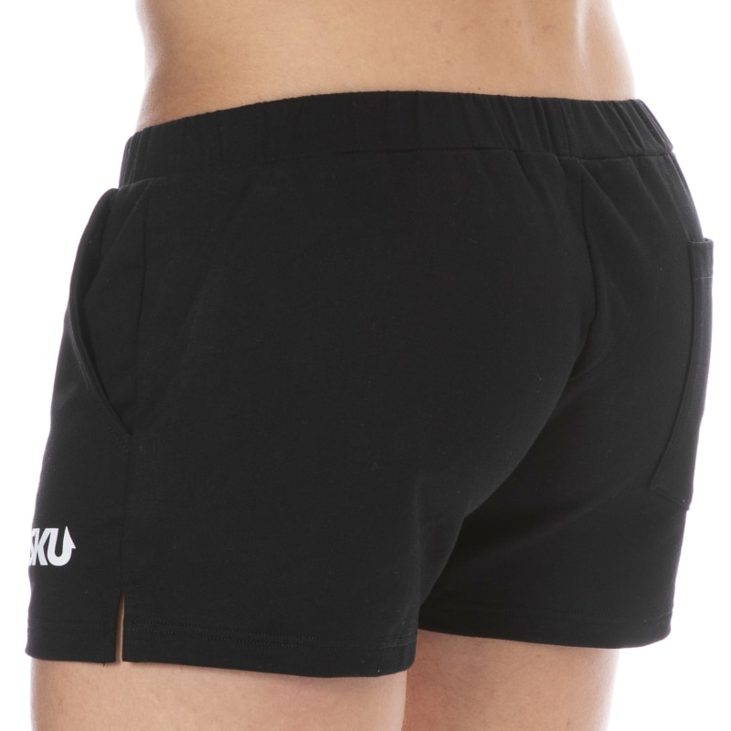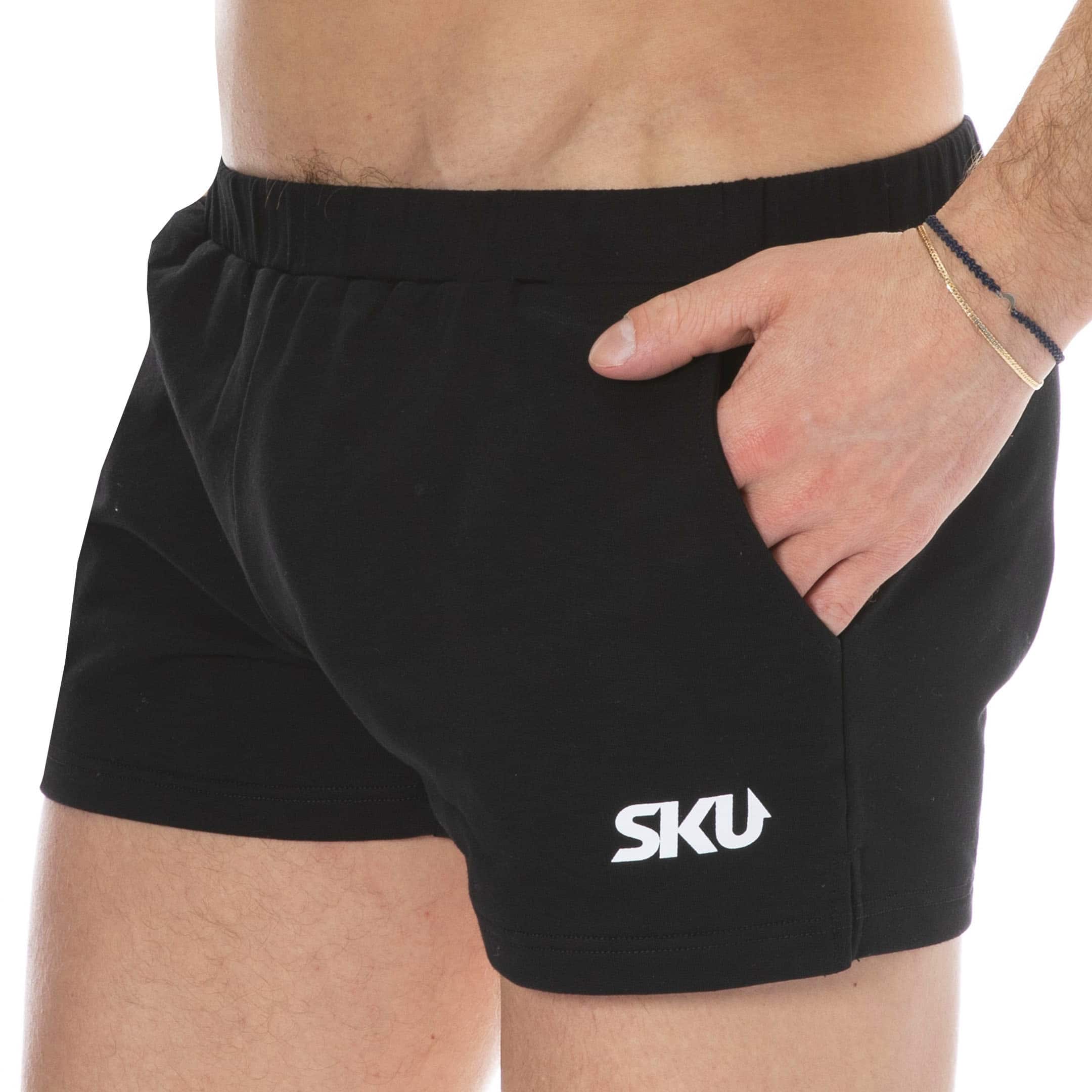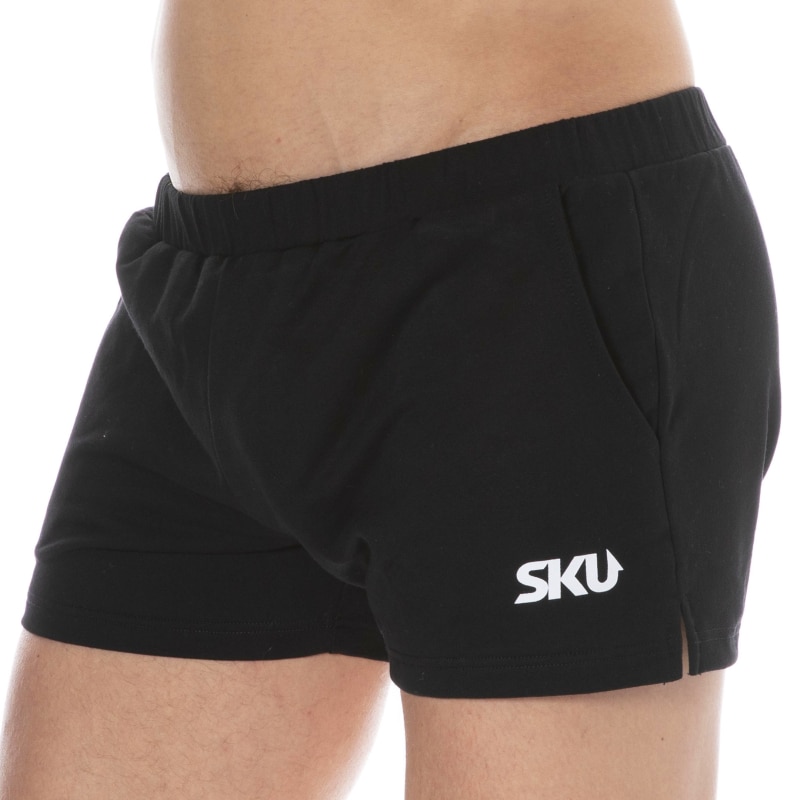 Short de sport très confortable en molleton 100% coton. Coupe courte, ajustée et échancrée sur les côtés. 2 poches latérales et une poche arrière. Logo SKU imprimé sur la cuisse gauche. Ceinture élastique recouverte.