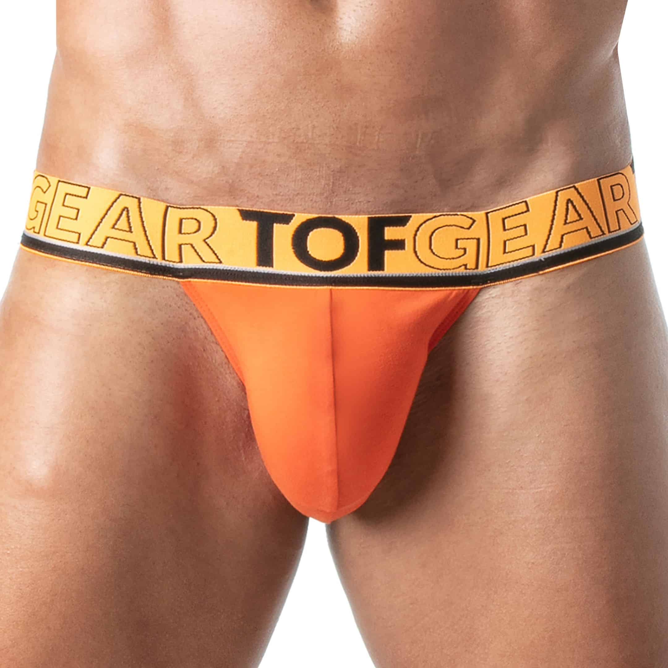 Slip taille basse en coton extensible. Coupe tanga très ajustée. Grande poche frontale non doublée. Bordures de couleur contrastée. Ceinture élastique jacquard signée TOF GEAR. Fabrication française.