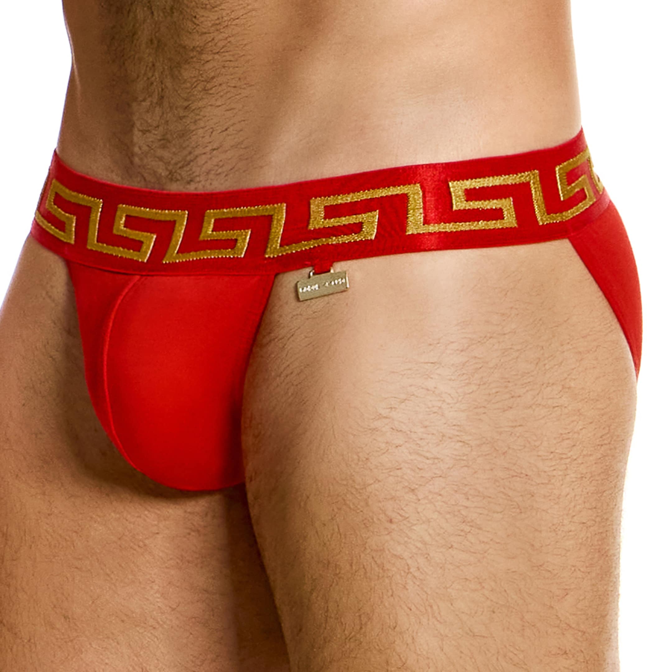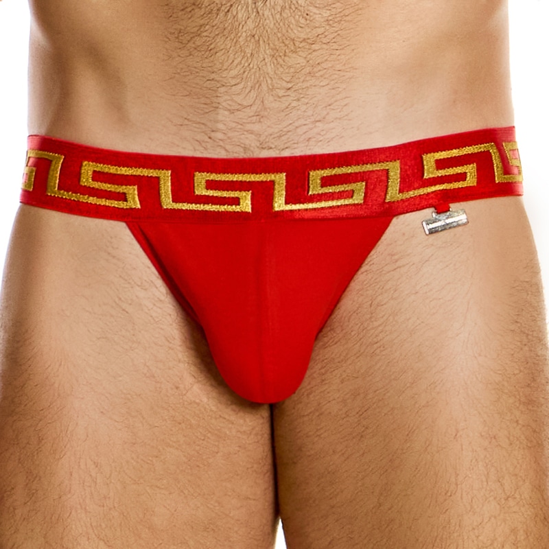 Slip taille basse en coton doux. Coupe tanga très sexy. Poche frontale doublée pour plus de confort. Plaque métallique Modus Vivendi sur la hanche gauche. Motif inspiré par la Grèce antique sur la ceinture élastique.