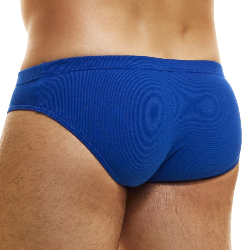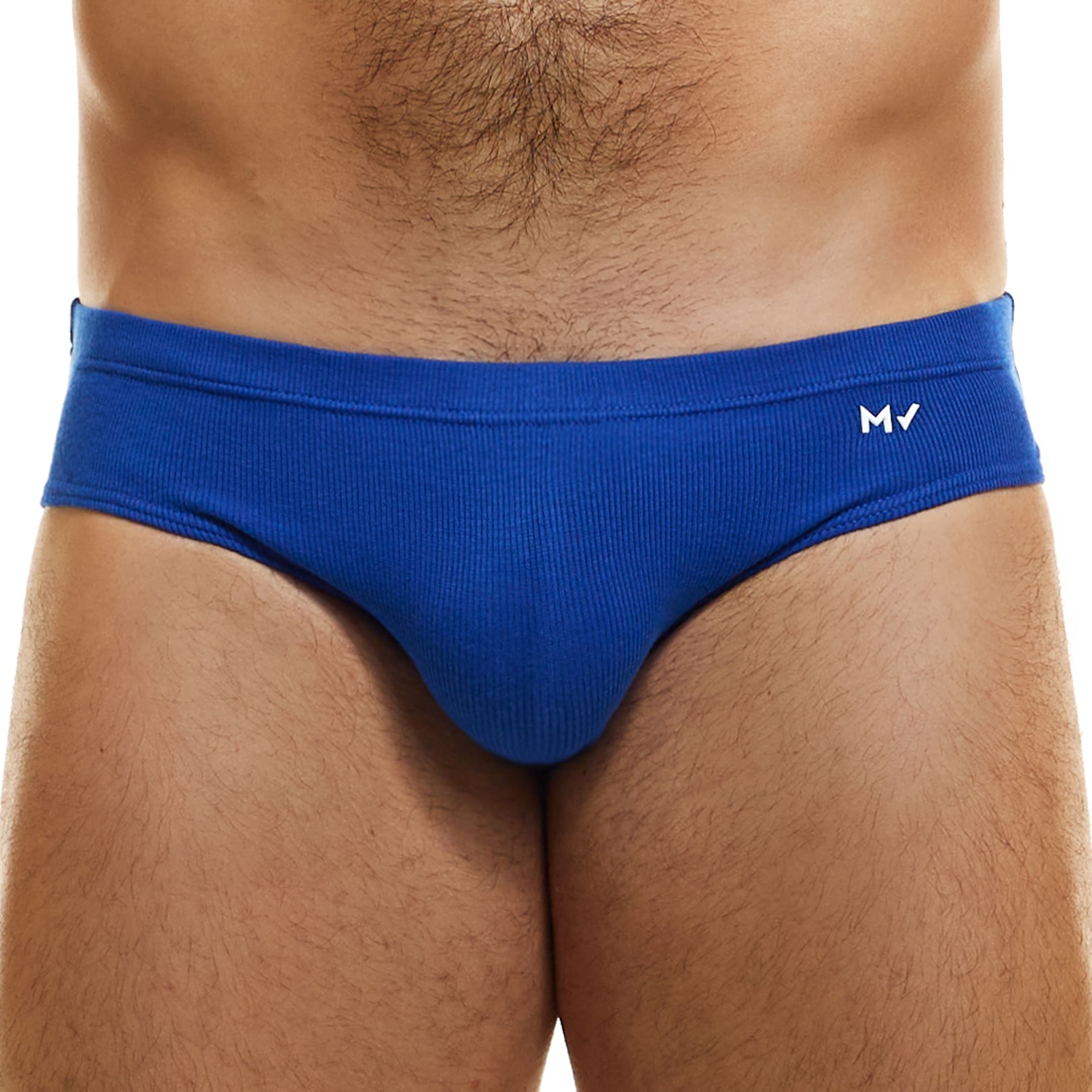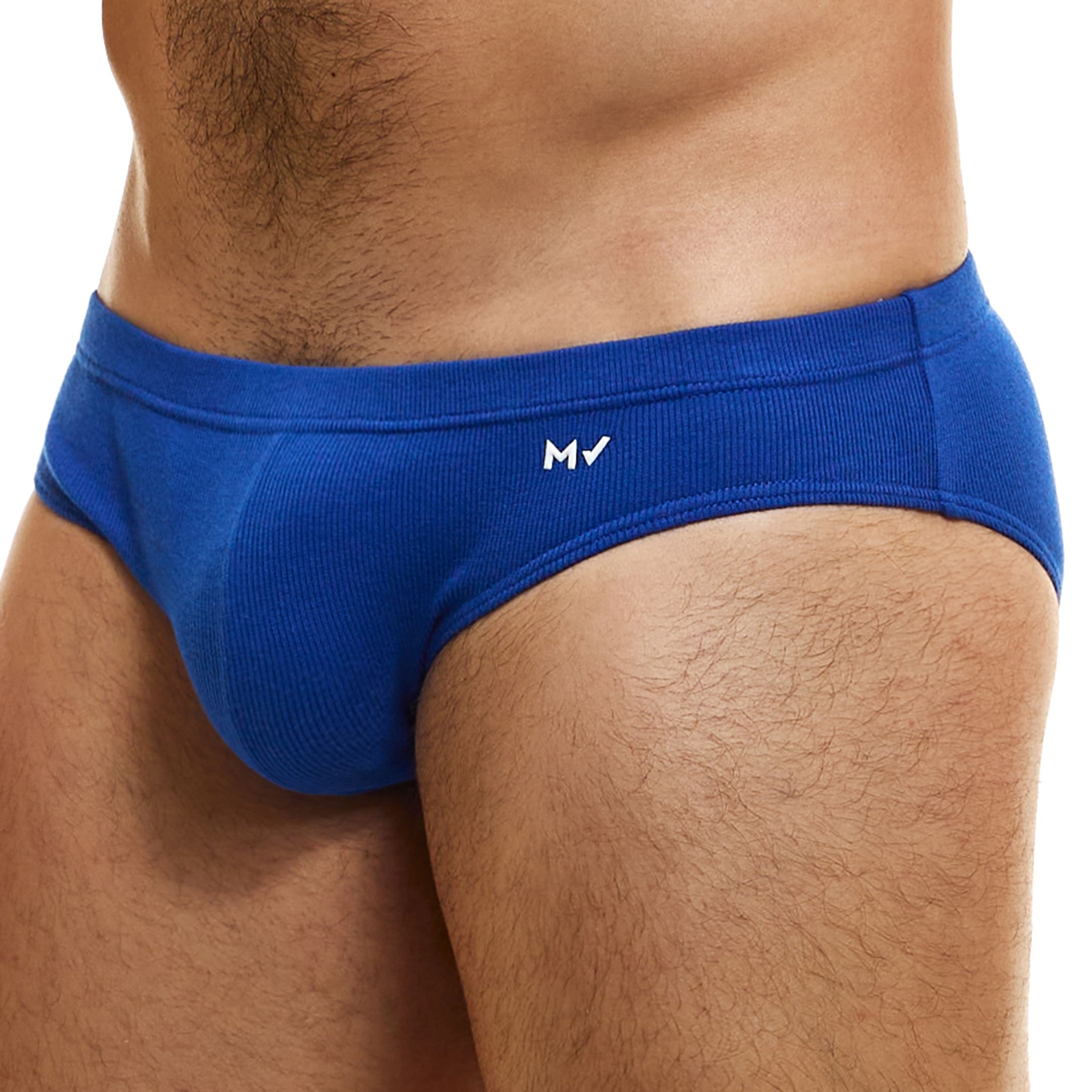 Slip taille basse en coton côtelé, doux et confortable, de couleur intense. Tissu éco-responsable certifié GOTS. Coupe classique. Logo MV sur la hanche gauche. Ceinture élastique fine et recouverte.