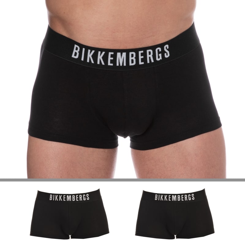 Lot de deux boxers en coton extensible, très doux et confortable. Poche frontale doublée. Ceinture élastique signée Bikkembergs.