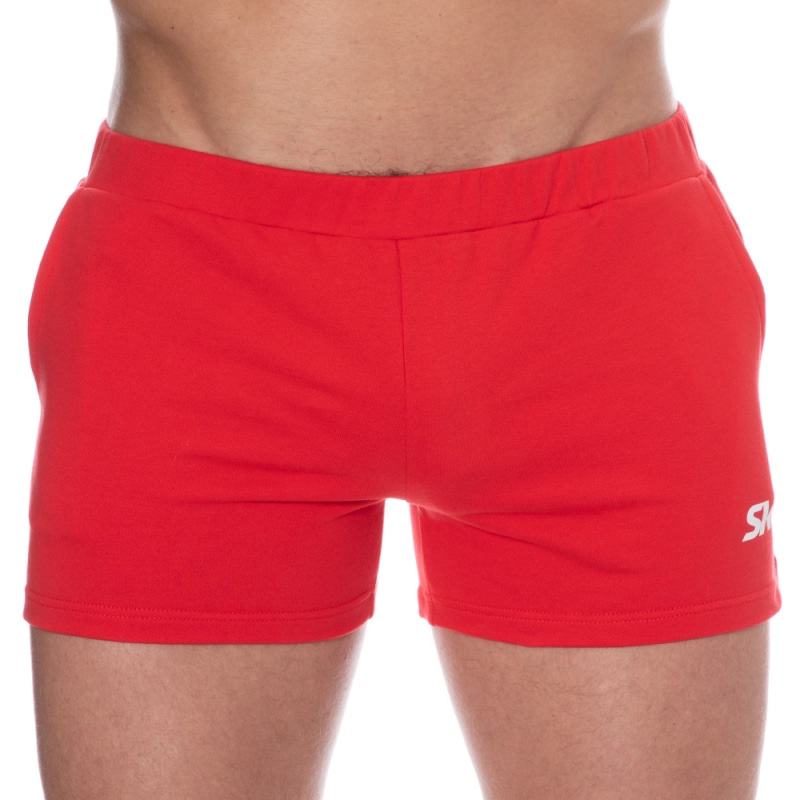 Short de sport très confortable en molleton 100% coton. Coupe courte, ajustée et échancrée sur les côtés. 2 poches latérales et une poche arrière. Logo SKU imprimé sur la cuisse gauche. Ceinture élastique recouverte.