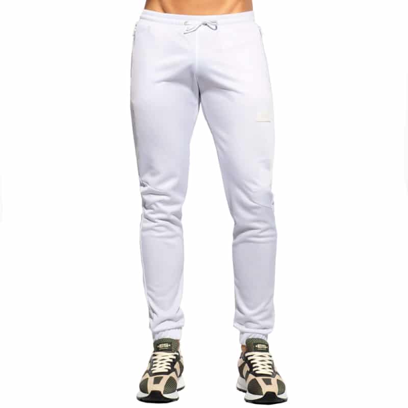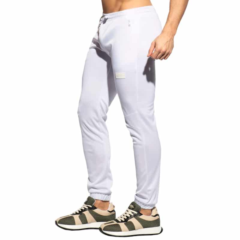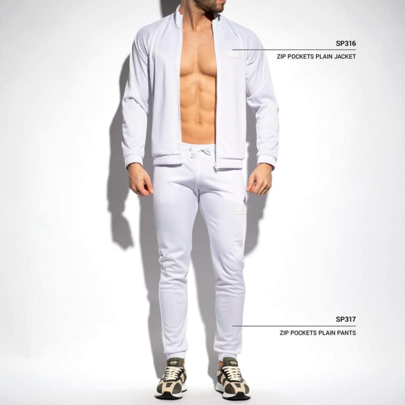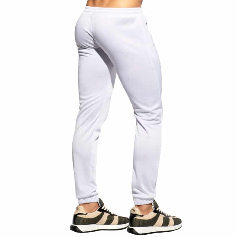 Pantalon de sport en microfibre douce et respirante de couleur unie. 2 poches à fermeture Eclair sur les côtés. Logo ES Collection en silicone sur la cuisse gauche. Bandes élastiquées aux chevilles. Ceinture élastique avec cordon de serrage.