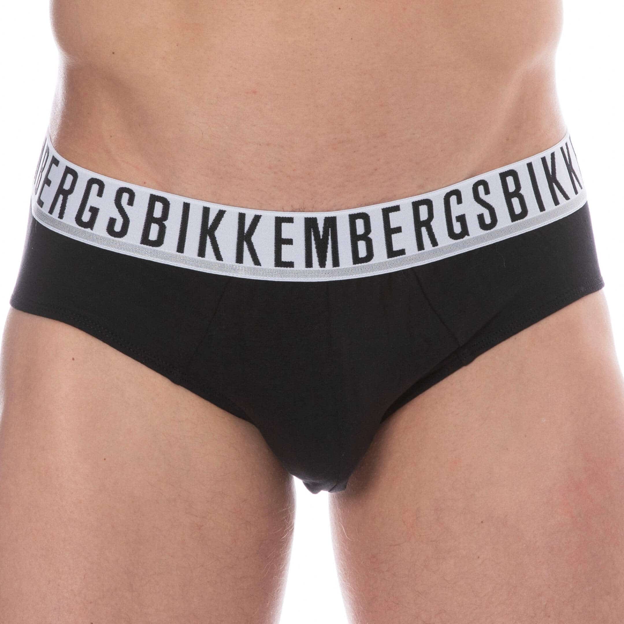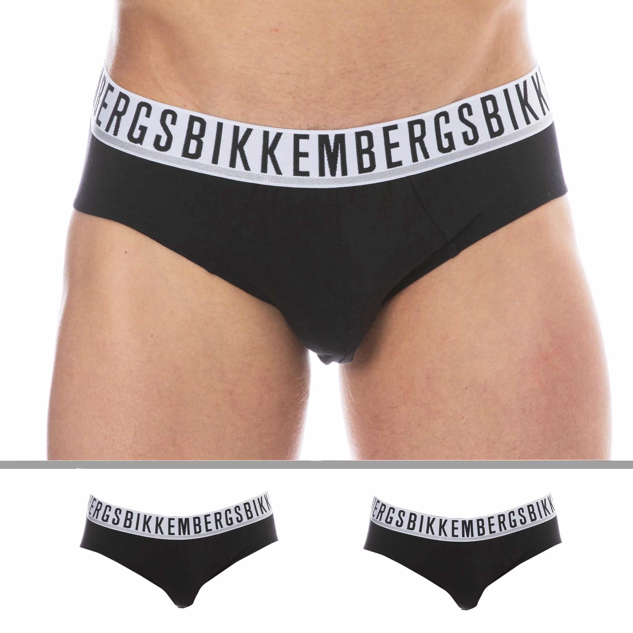 Lot de deux slips en coton extensible, très doux et confortable. Poche frontale doublée. Ceinture élastique de couleur contrastée signée Bikkembergs.