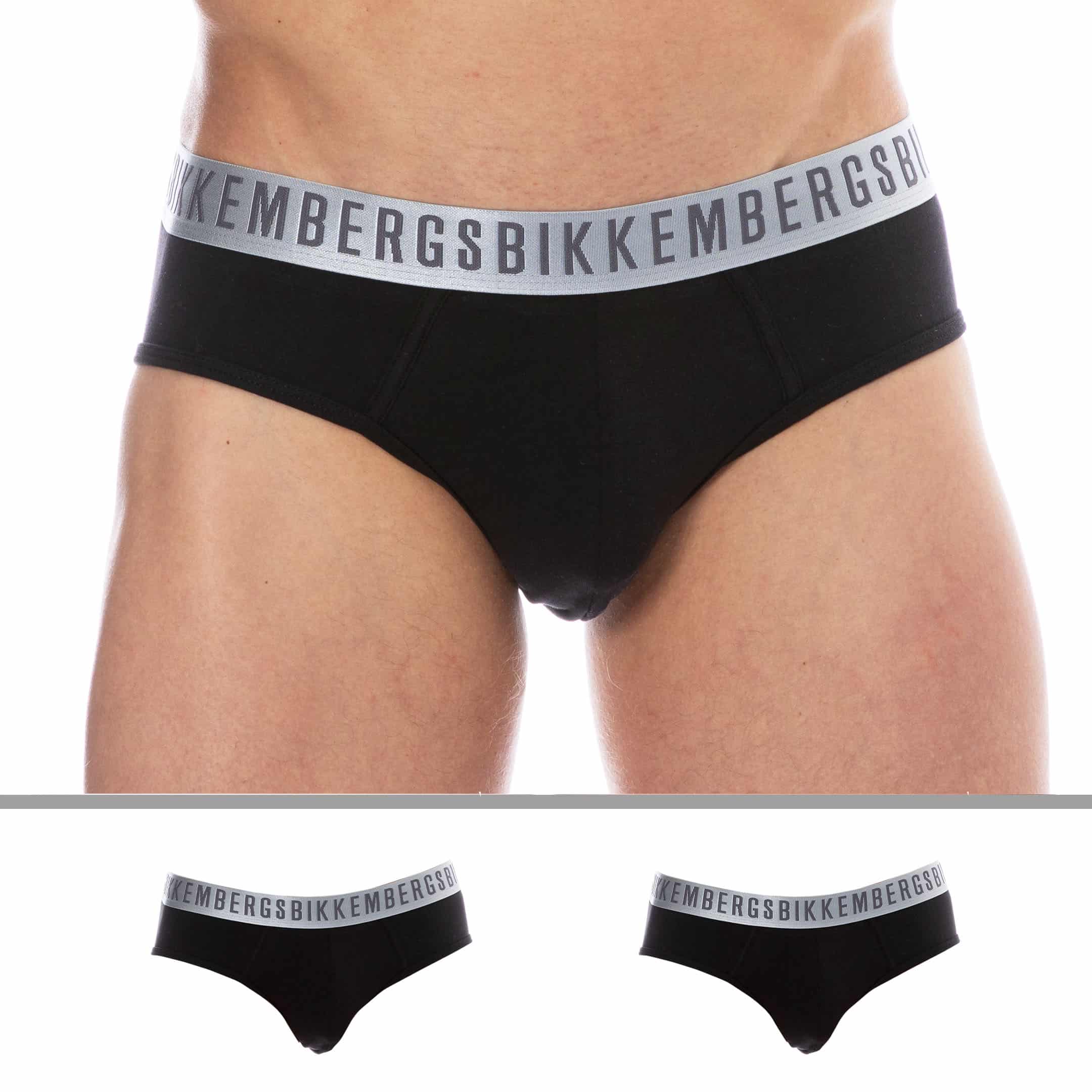 Lot de deux slips en coton extensible, très doux et confortable. Poche frontale doublée. Ceinture élastique logotypée de couleur argentée