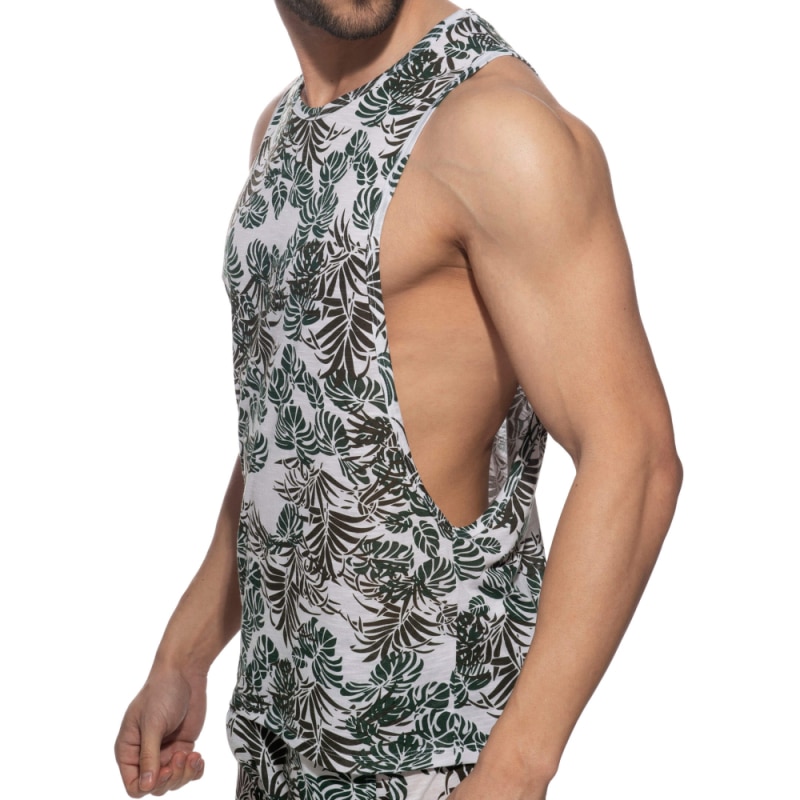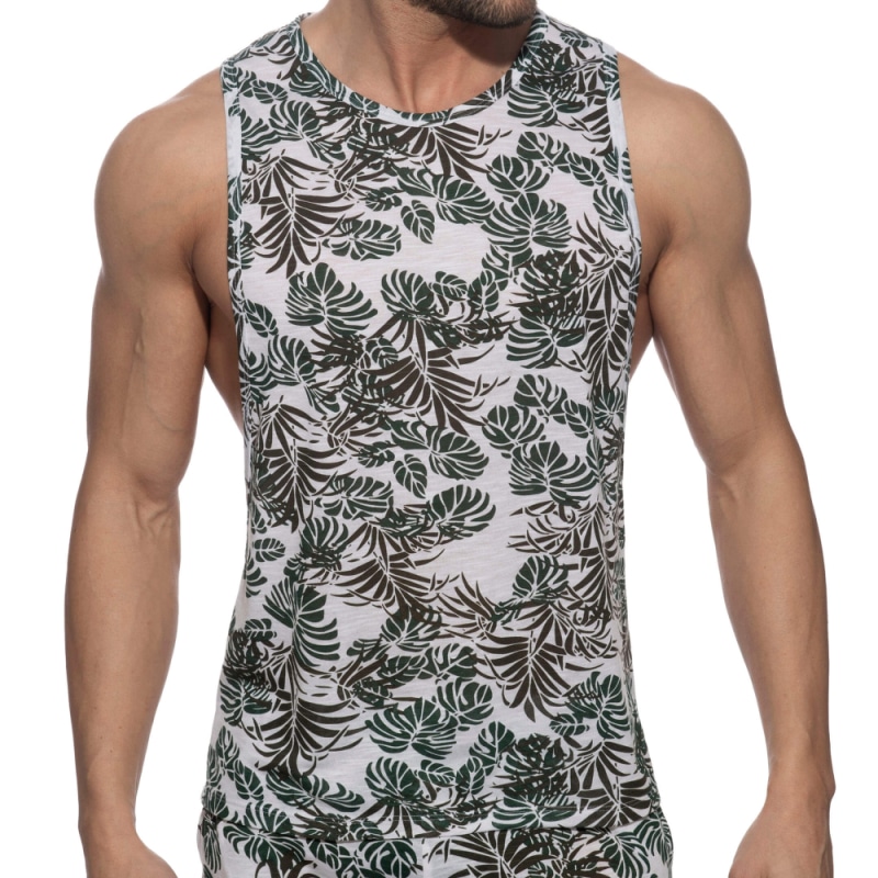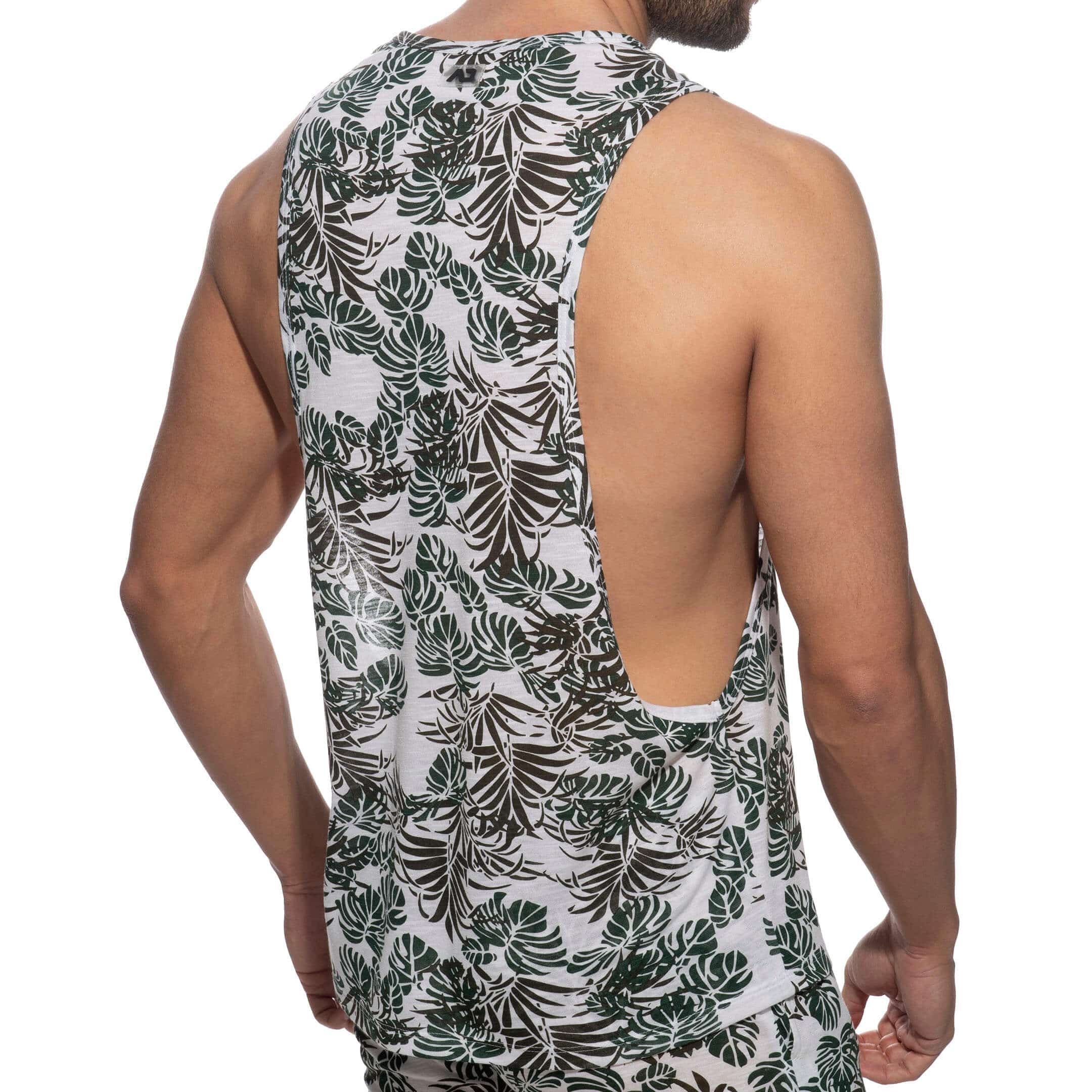Débardeur en mélange super léger et respirant à base de viscose. Tissu extensible imprimé d'un motif tropical très tendance. Larges ouvertures sous les bras. Logo Addicted en silicone en haut du dos.