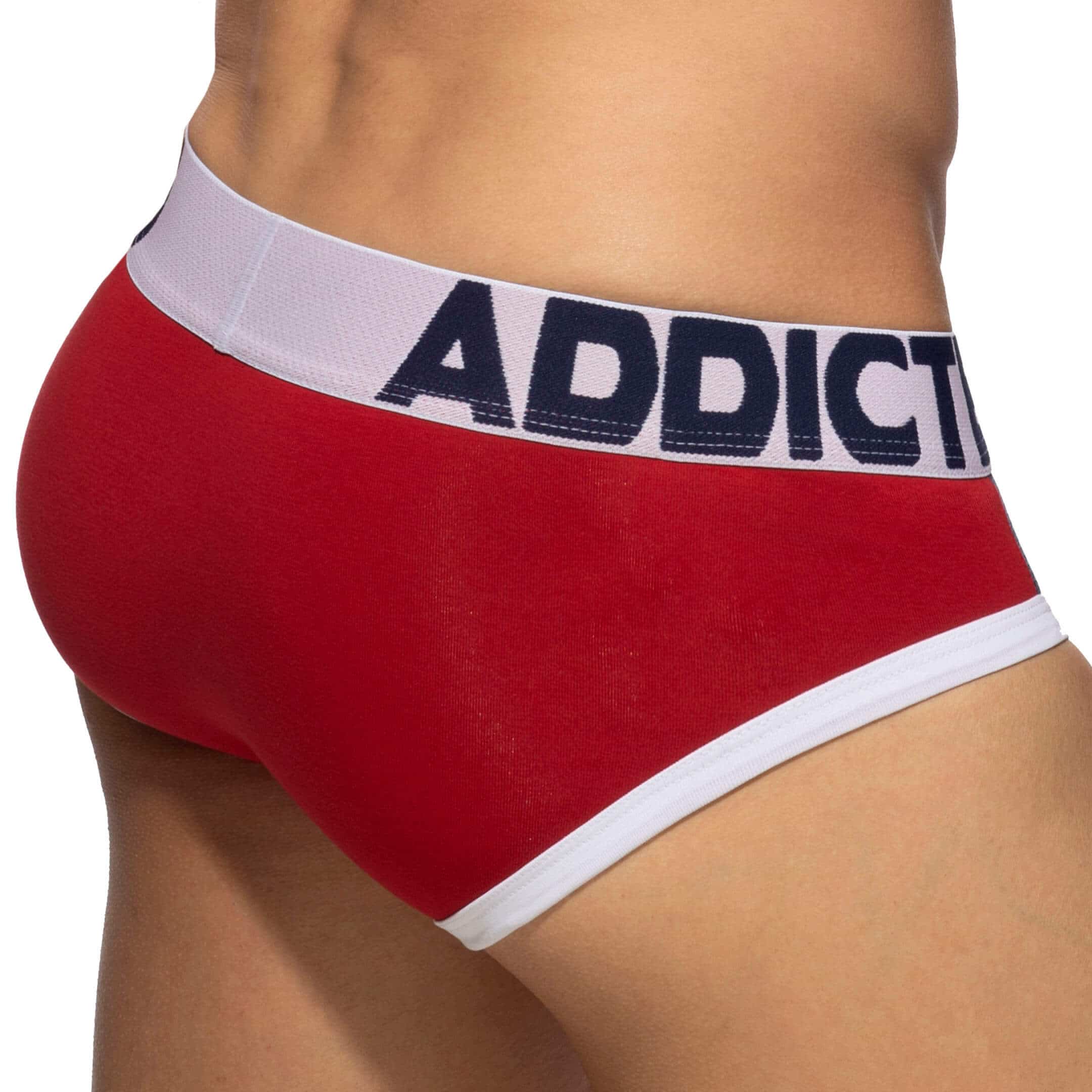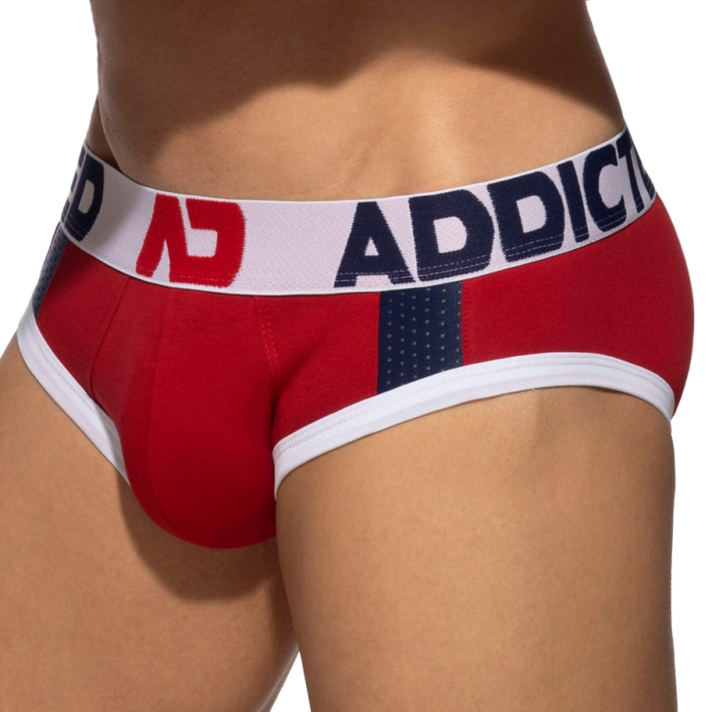 Slip sport taille basse très ajusté en coton doux et confortable. Bande latérale contrastée en mesh respirant. Système Pack Up intégré avec mousse amovible pour plus de volume frontal. Large ceinture élastique en jacquard signée Addicted.