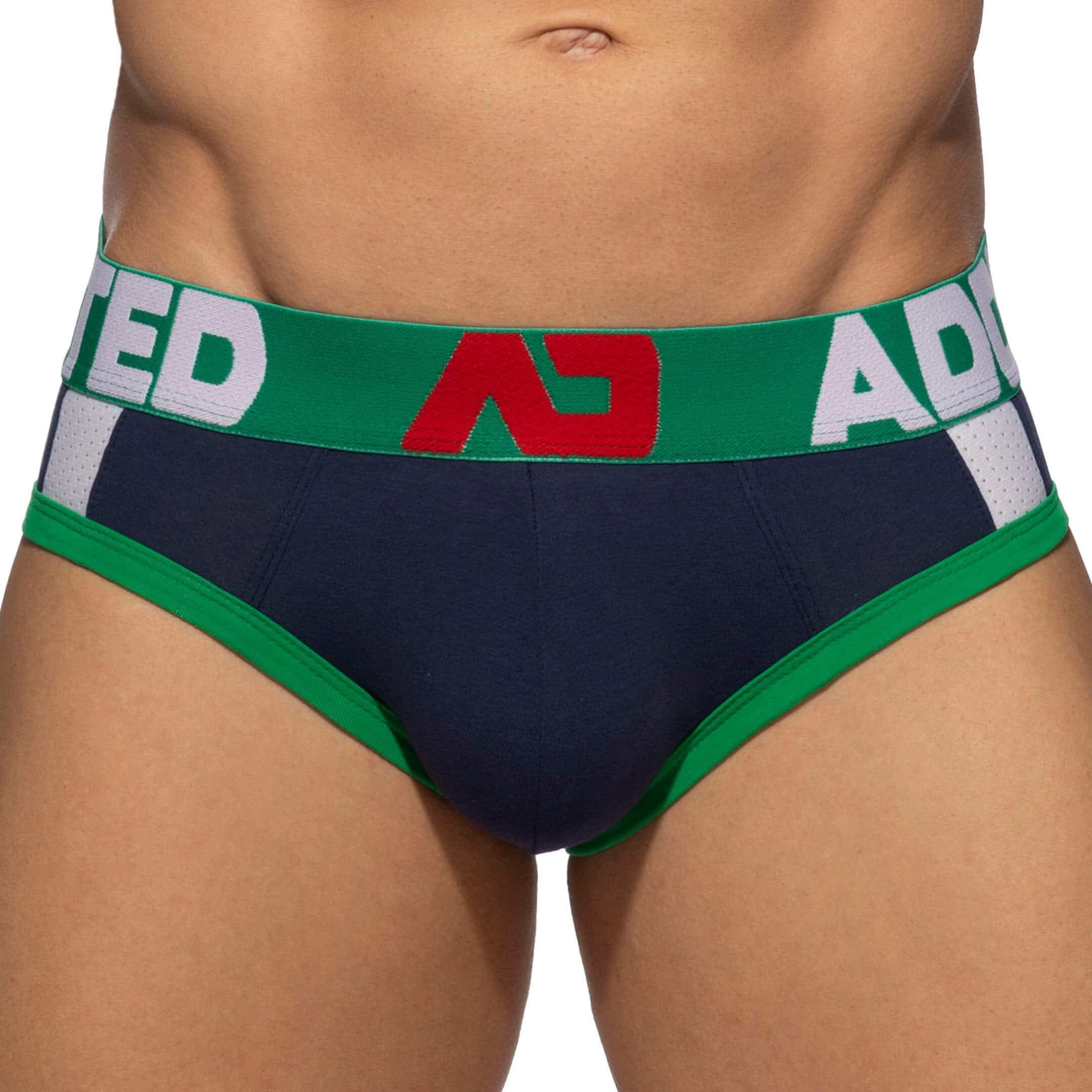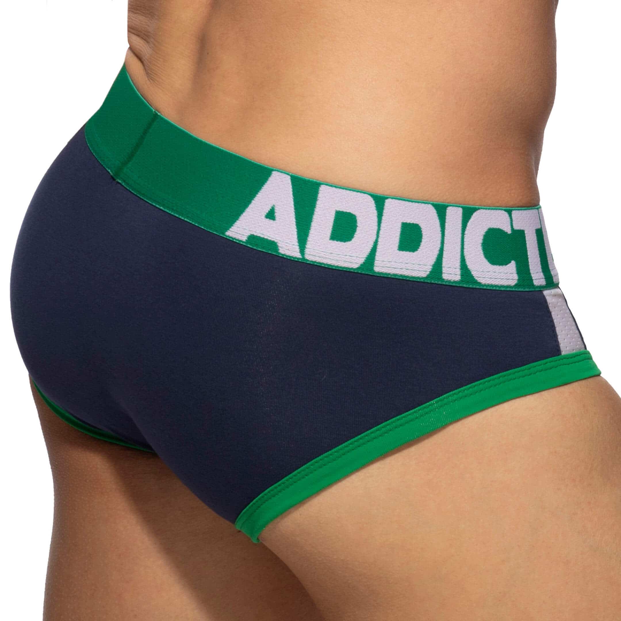 Slip sport taille basse très ajusté en coton doux et confortable. Bande latérale contrastée en mesh respirant. Système Pack Up intégré avec mousse amovible pour plus de volume frontal. Large ceinture élastique en jacquard signée Addicted.