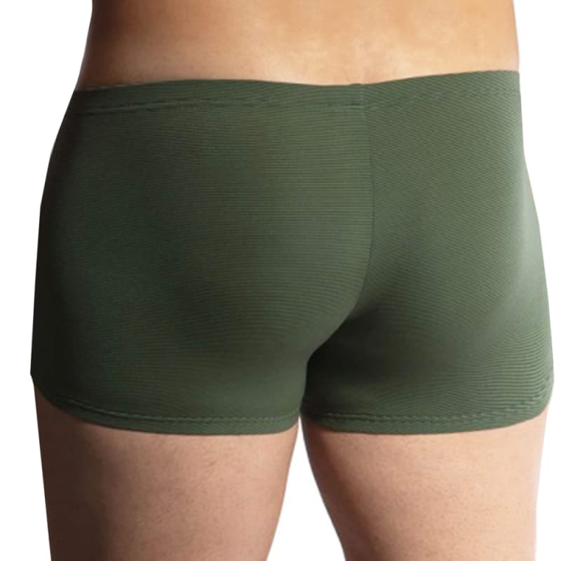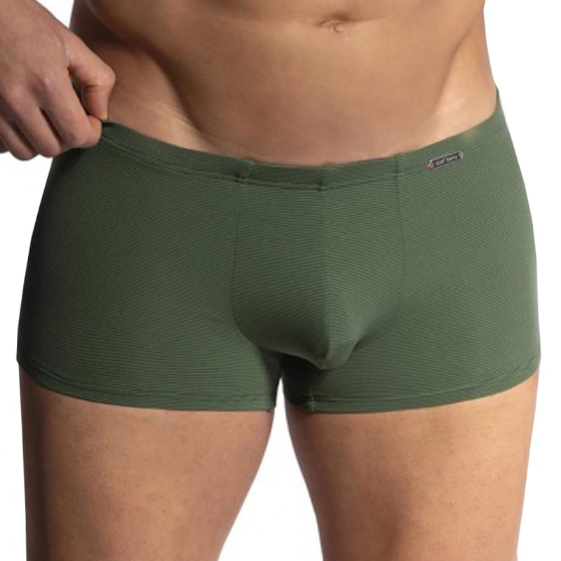 Boxer court taille basse en microfibre extensible ultra légère, très agréable au contact de la peau. Alternance de fines rayures brillantes et mates pour un très bel effet optique. Coupe classique, simple et élégante. Poche frontale non doublée. Plaque métallique Olaf Benz cousue sur la fine ceinture élastique.