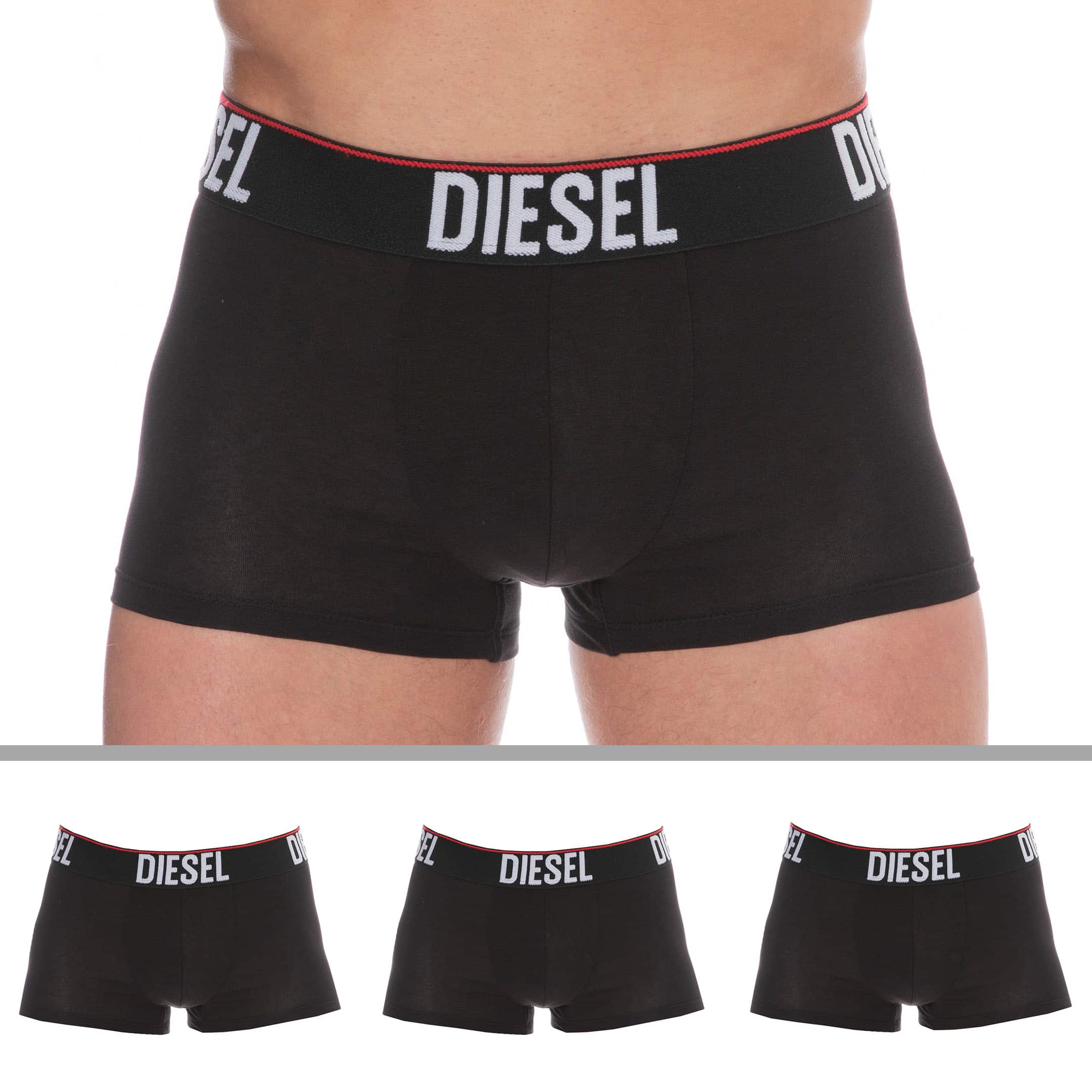 Lot de 3 boxers en coton extensible, doux et confortable. Poche frontale doublée. Ceinture élastique en jacquard doux signée Diesel.