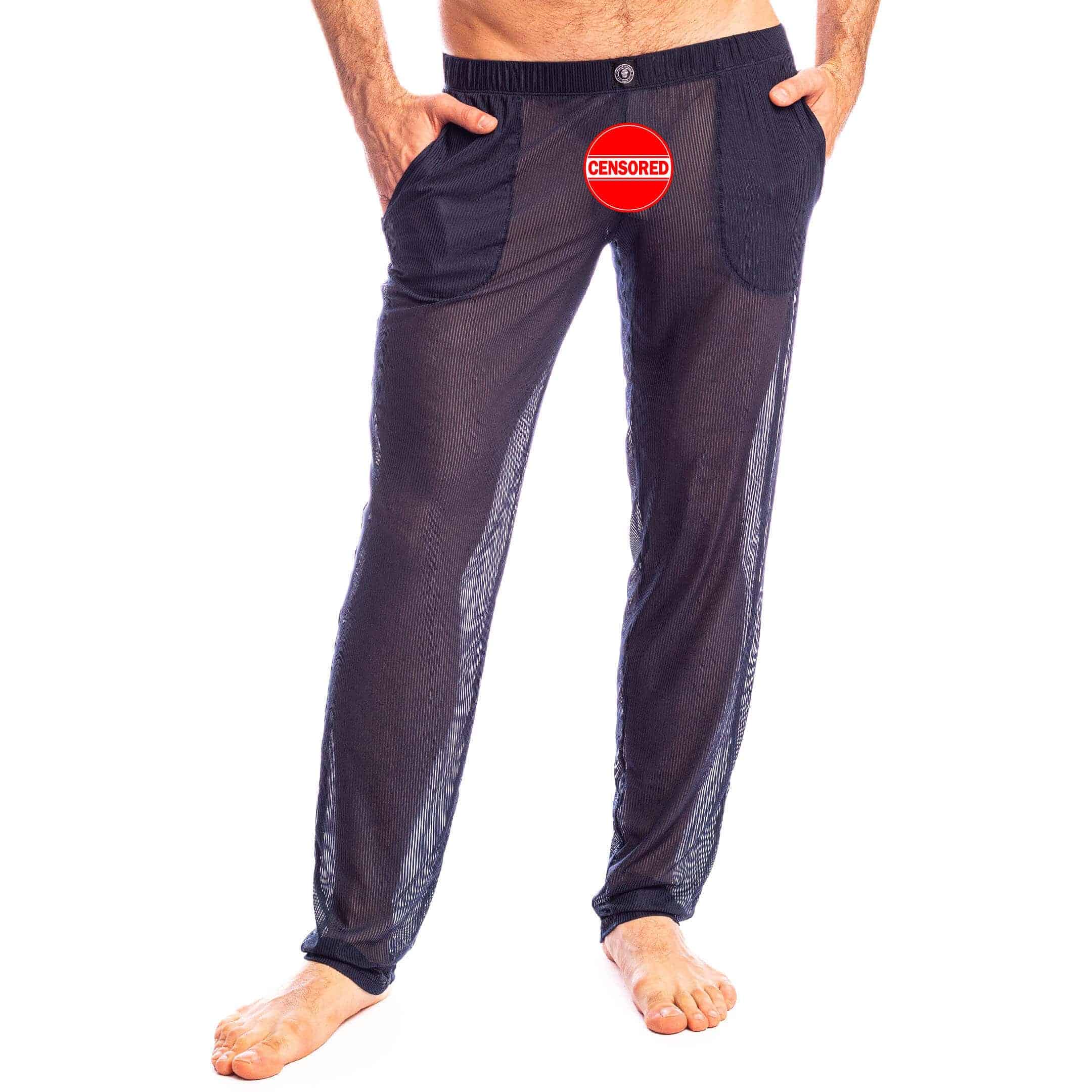 Pantalon d'intérieur très sexy en fine maille transparente, rayée, fluide et légère. Coupe taille basse, droite et ajustée. 2 poches. A porter par-dessus un sous-vêtement, ou seul pour les plus audacieux. Etiquette L'Homme Invisible sur la ceinture élastique.