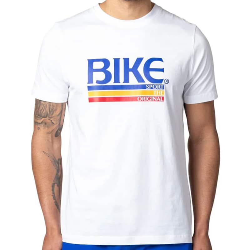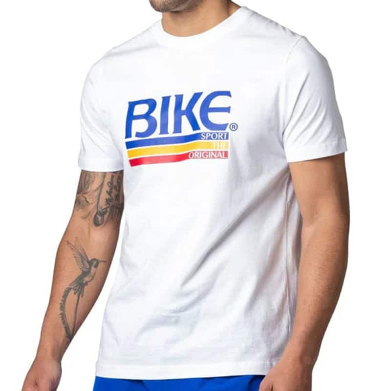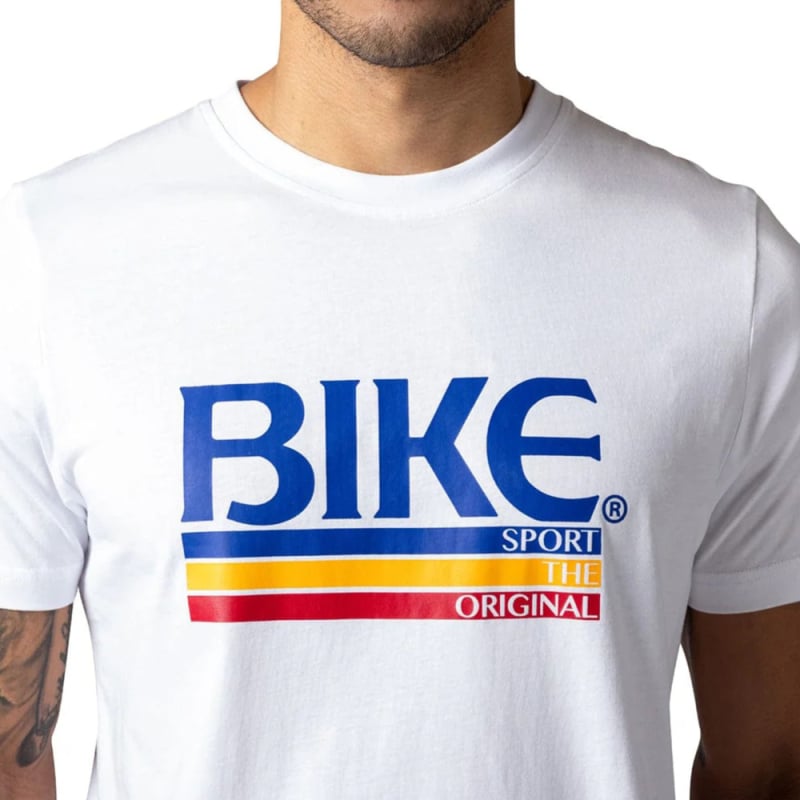 T-Shirt sport 100% coton doux et confortable. Grand logo BIKE aux couleurs de l'arc-en-ciel sur la poitrine. Manches courtes et col rond.
