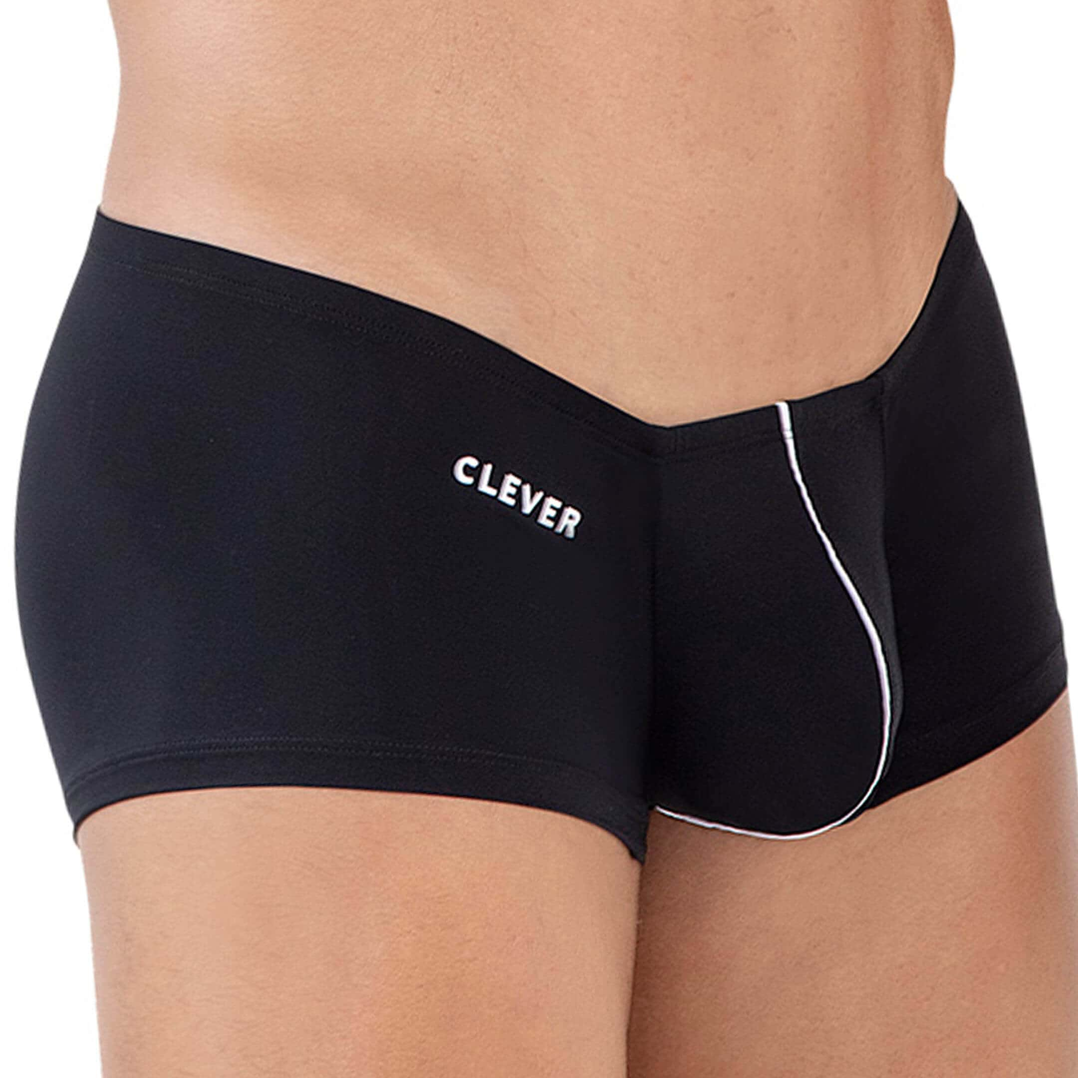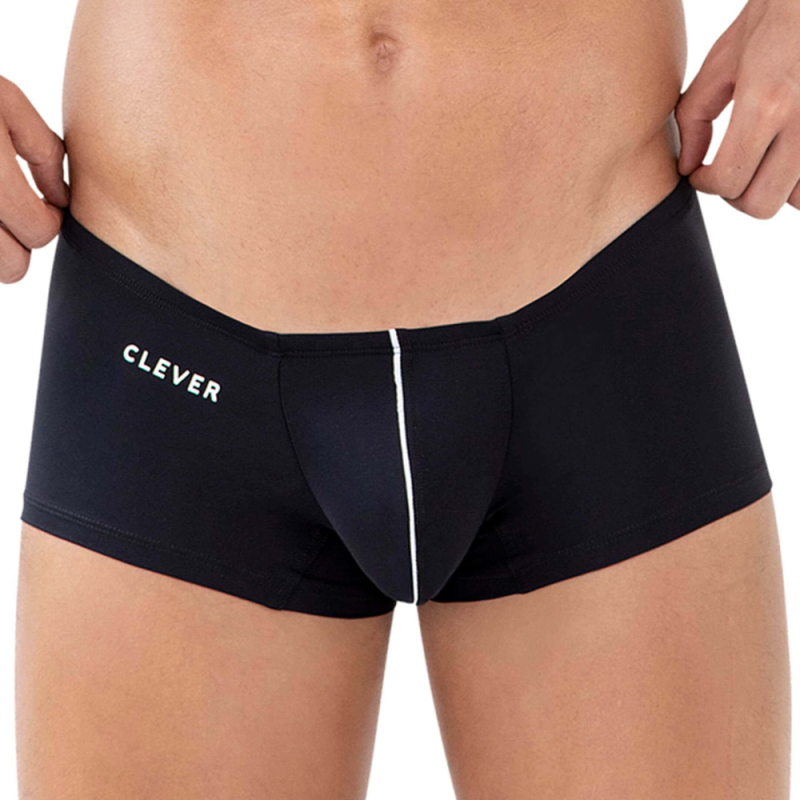 Shorty taille basse en microfibre extensible, douce et confortable, pour un effet seconde peau. Poche anatomique enveloppant naturellement votre intimité, pour un maintien très agréable et sensuel. Le liseré vertical de couleur contrastée apporte davantage de volume à la poche frontale. Fine ceinture élastique recouverte. Logo Clever imprimé sur la hanche droite.