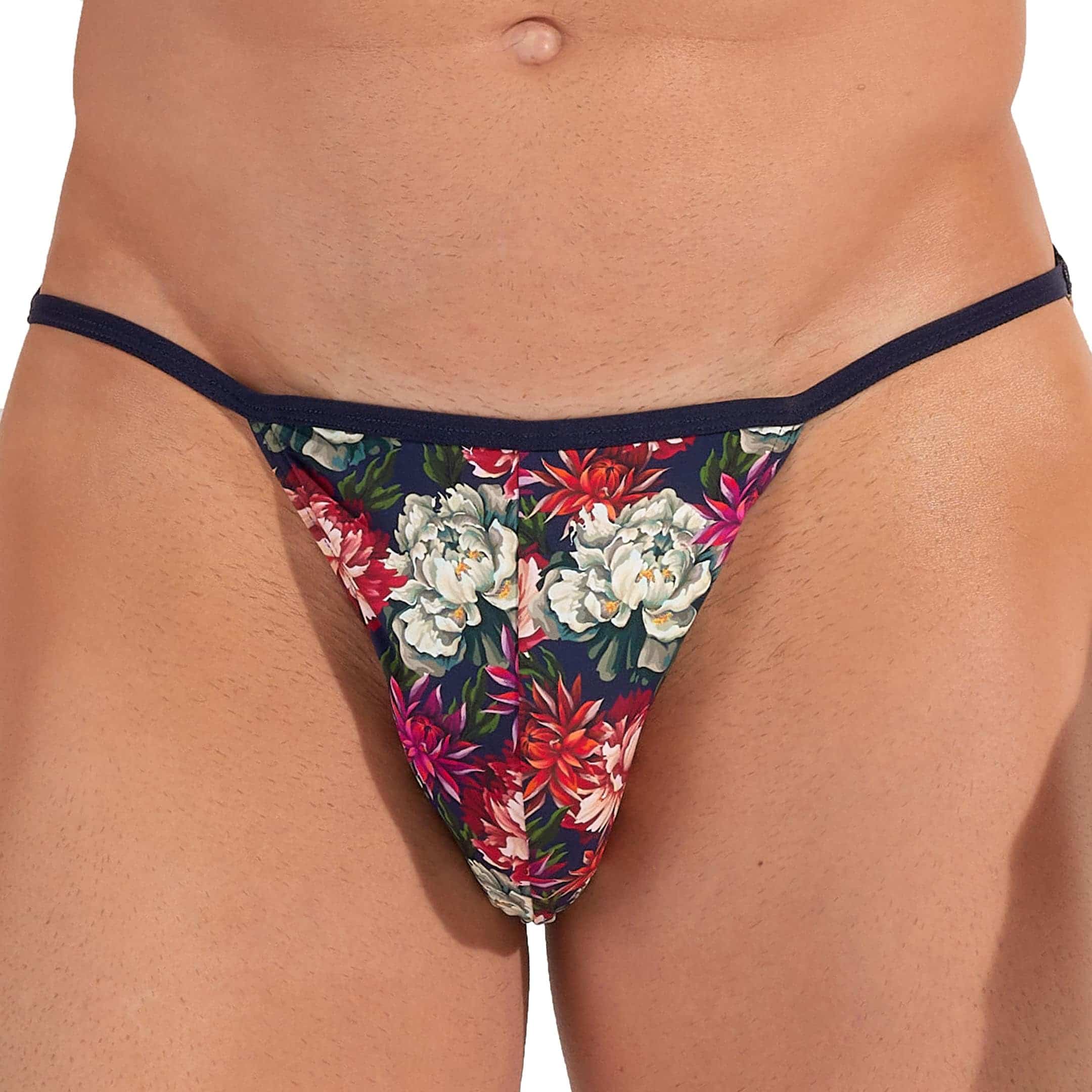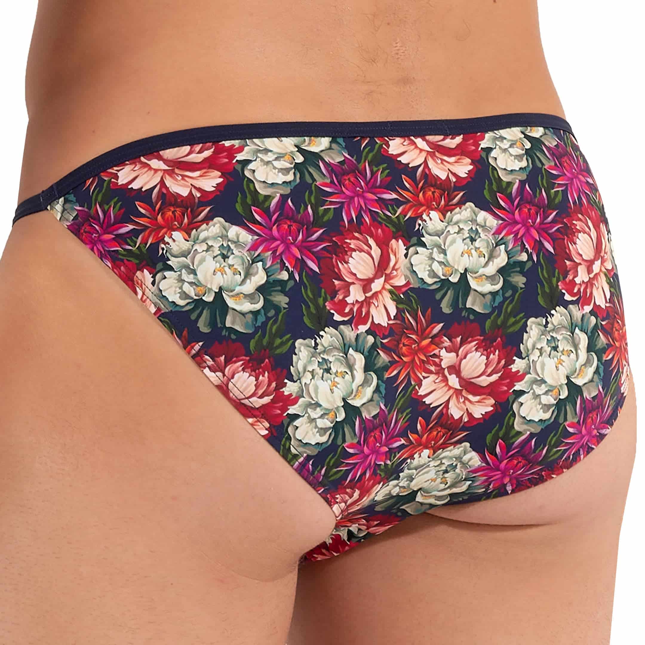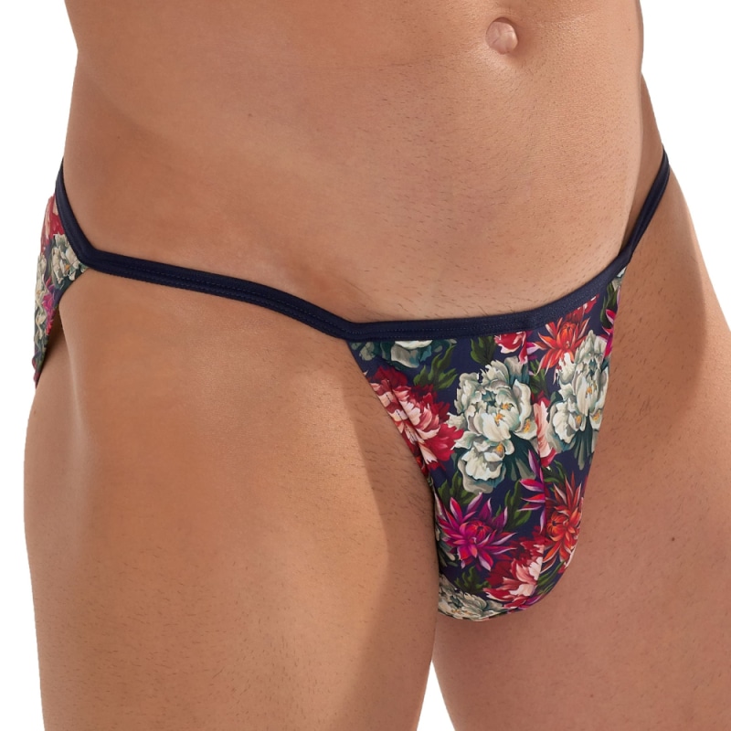 Slip sexy et original en microfibre extensible ultra douce et confortable. Coupe tanga taille basse. Imprimé floral, tendance et coloré. Poche frontale doublée. Ceinture élastique fine.