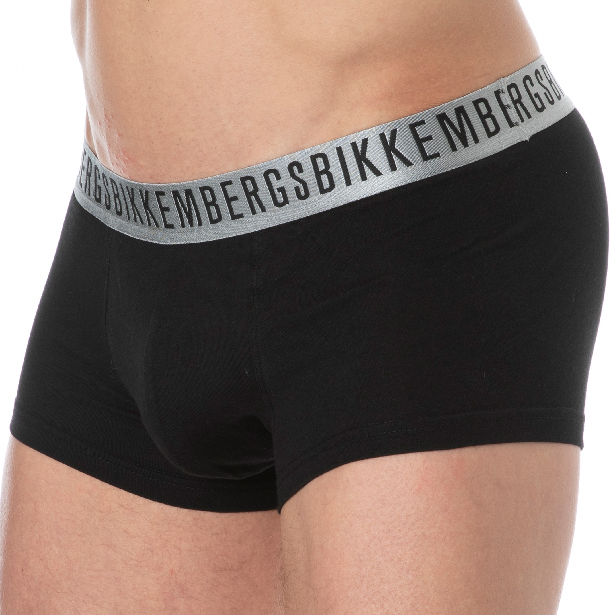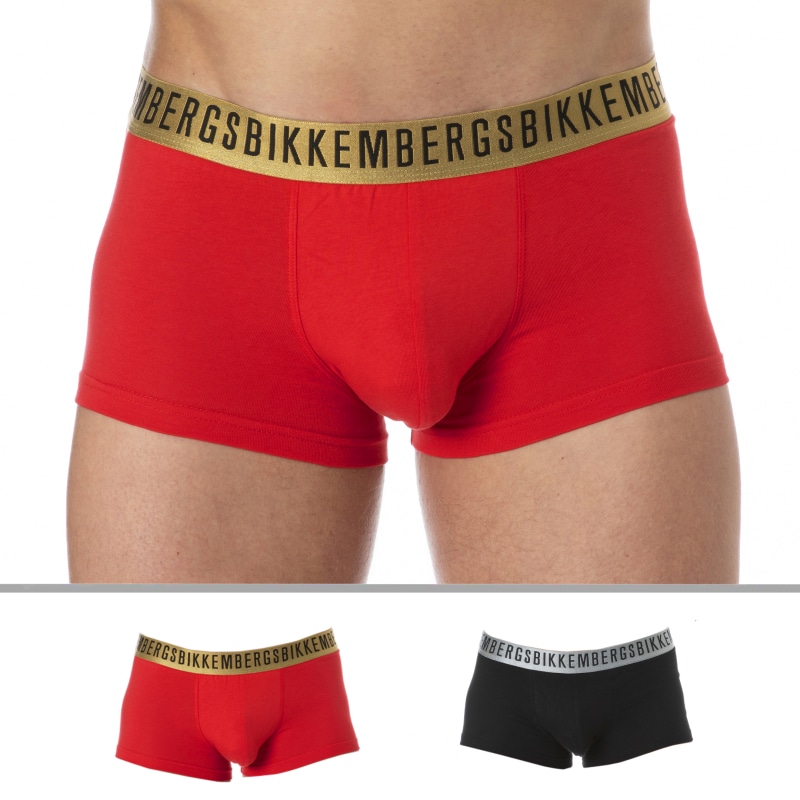 Lot de deux boxers en coton extensible, très doux et confortable. Poche frontale doublée. Ceinture élastique de couleur métallique brillante signée Bikkembergs.