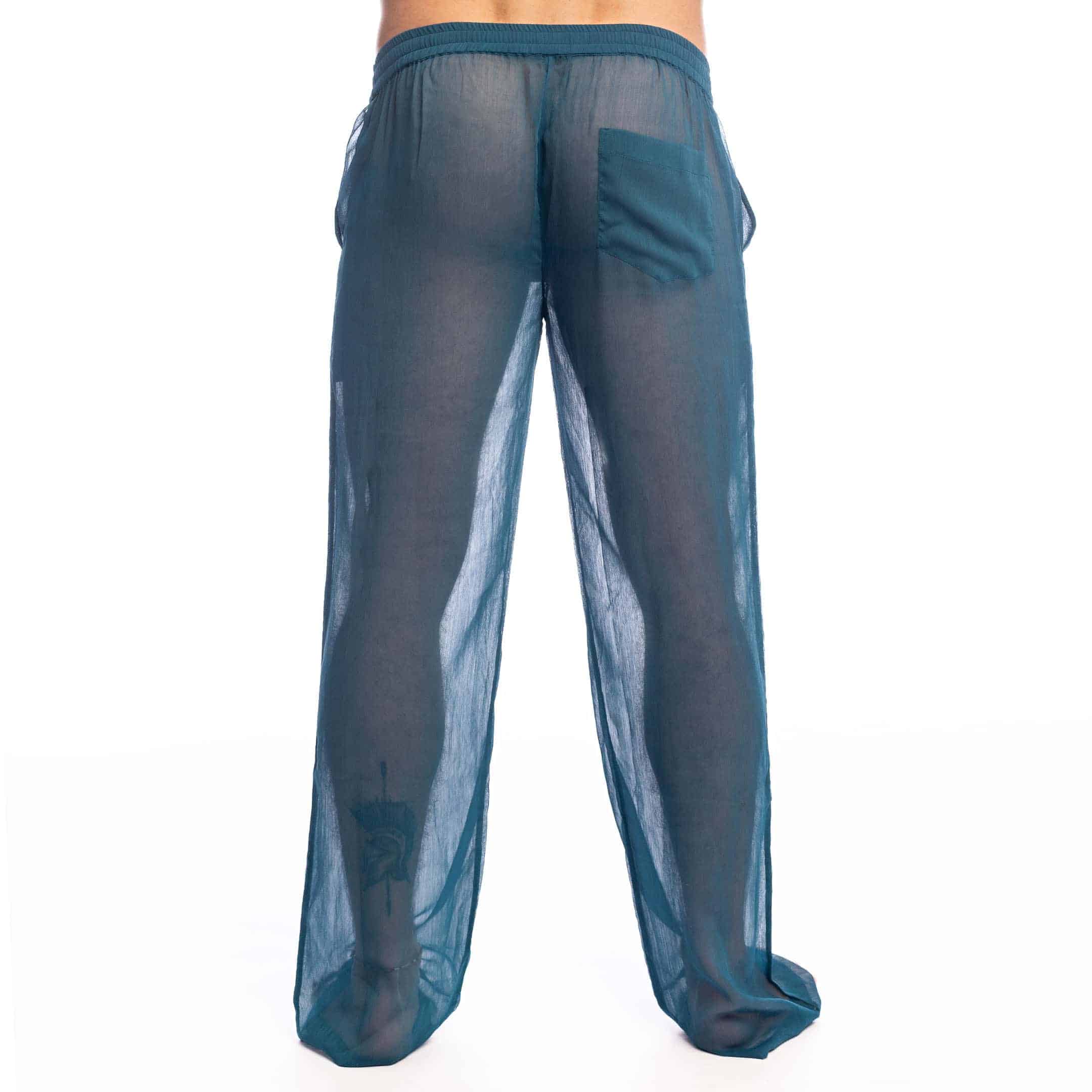 Pantalon d'intérieur raffiné en mousseline légère et totalement transparente. Coupe taille basse, ample et fluide. 3 poches. Ceinture élastique avec cordon de serrage intérieur.