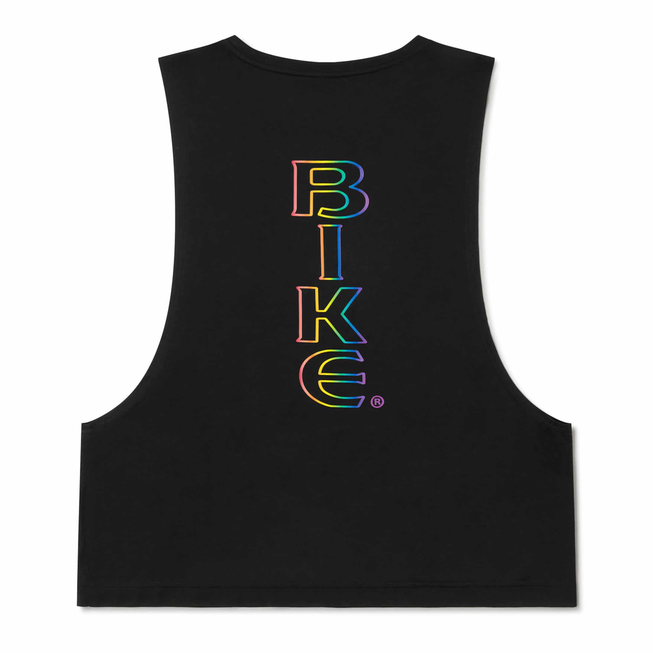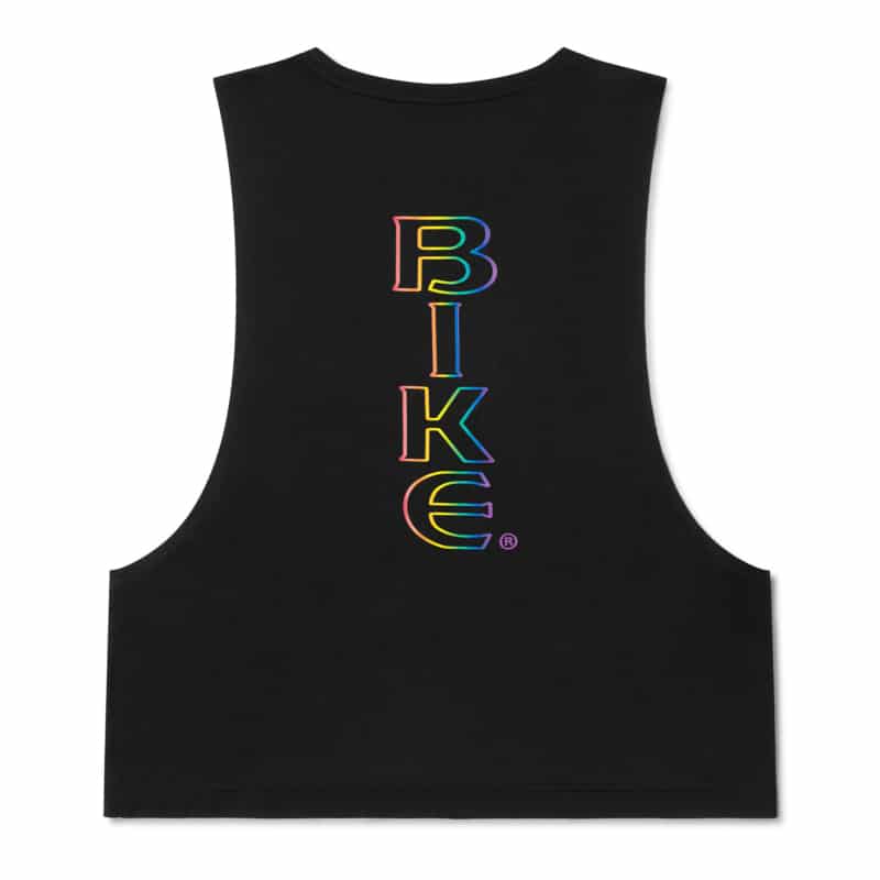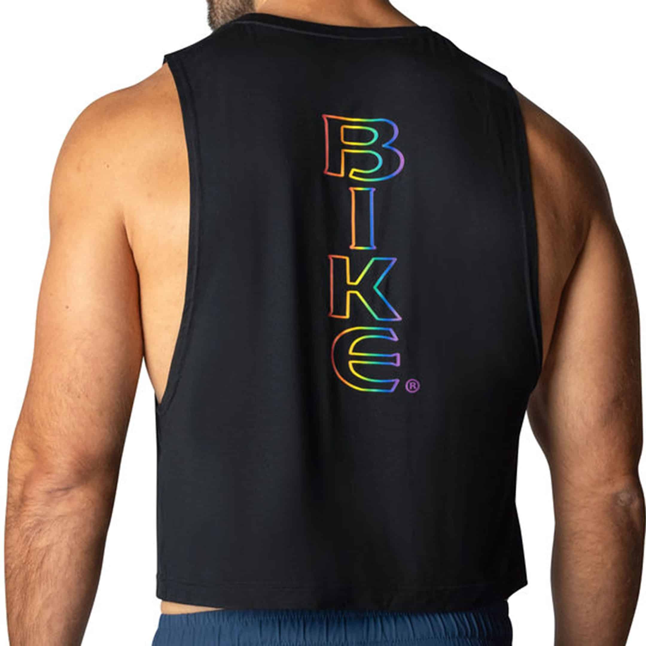 Débardeur sport en modal extensible super doux et confortable. Coupe raccourcie pour dévoiler vos abdos. Grand logo BIKE aux couleurs de l'arc-en-ciel dans le dos.