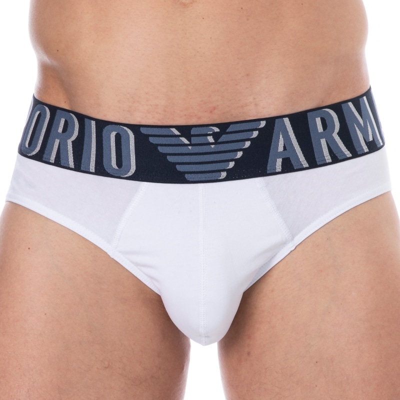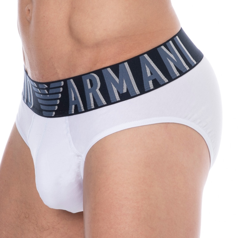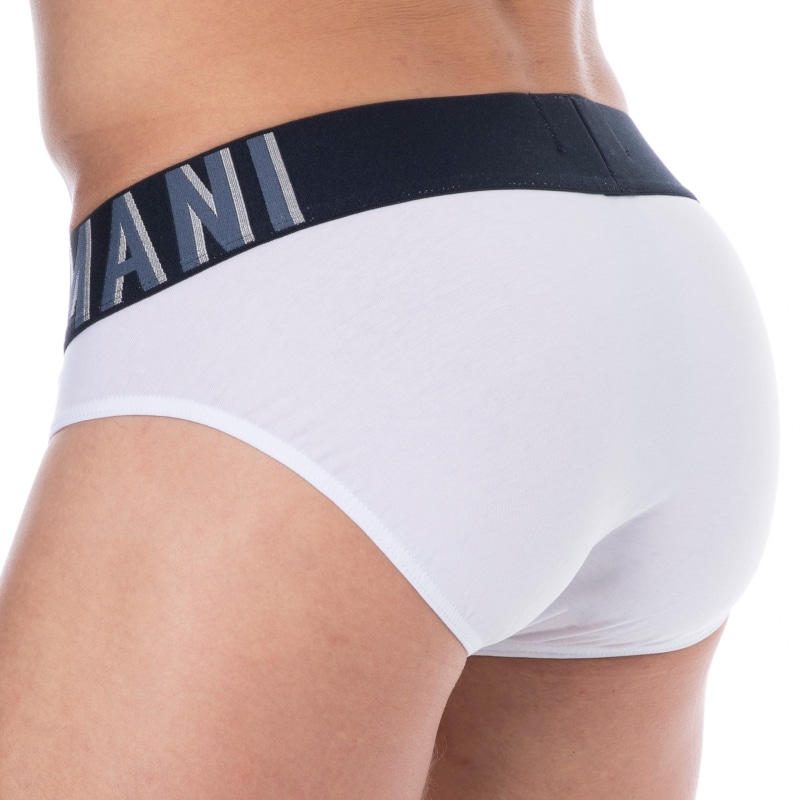Slip en coton bio extensible, très doux et confortable. Coupe taille basse, simple et élégante. Poche frontale doublée. Large ceinture élastique contrastée signée Emporio Armani.