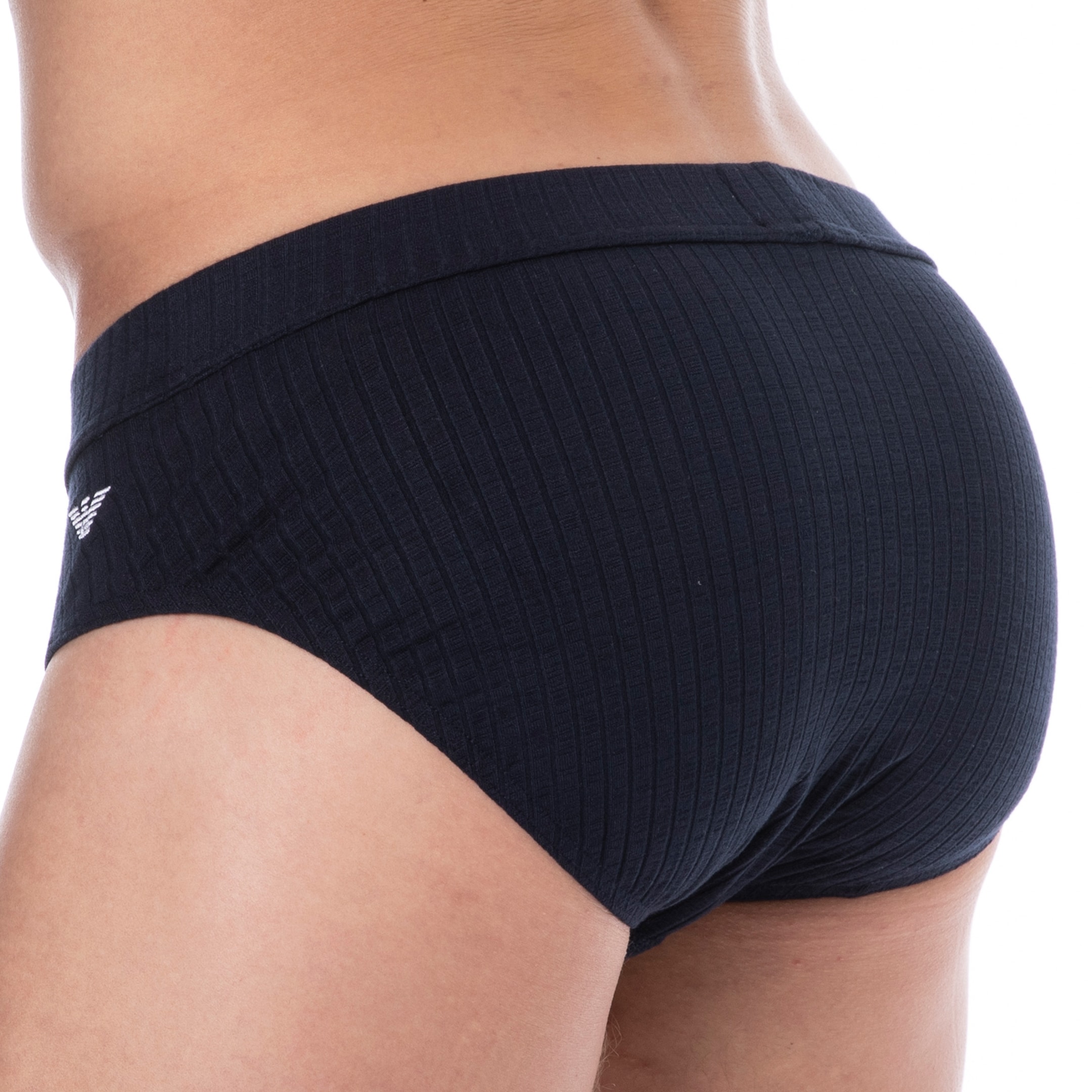 Slip doux et confortable en viscose côtelée avec un aspect tricoté. Aigle iconique brodé sur la hanche gauche. Coupe taille basse, simple et élégante. Poche frontale doublée. Ceinture élastique recouverte.