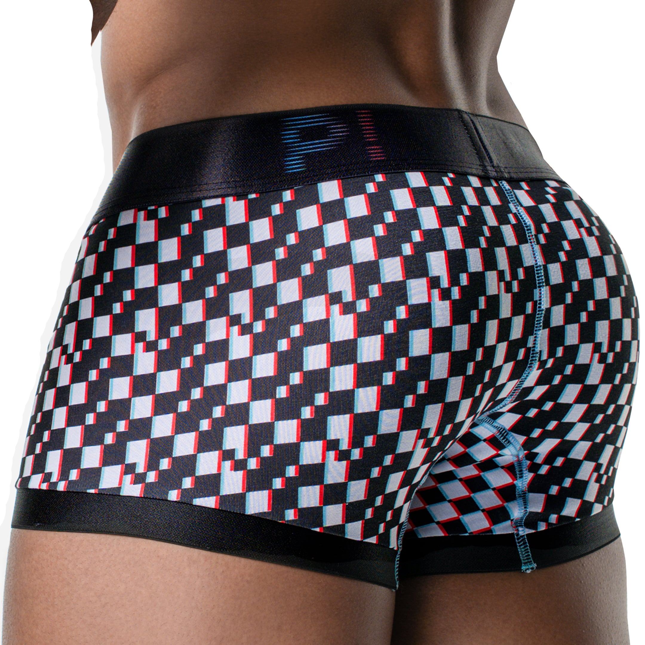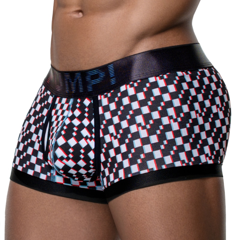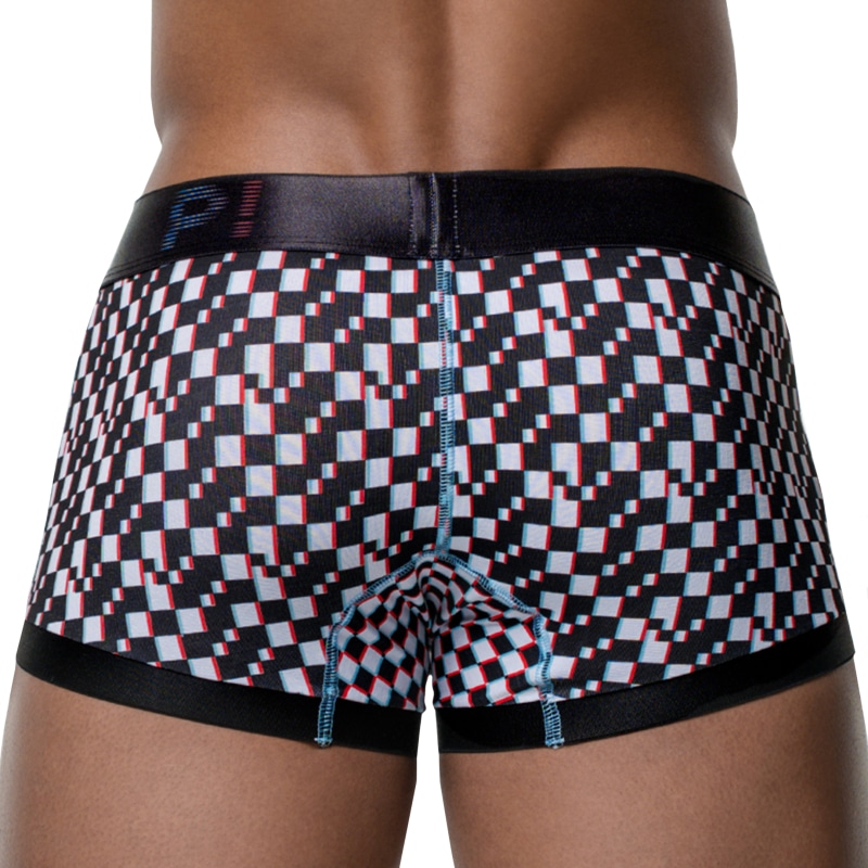 Boxer en coton CoolTouch offrant une sensation de fraîcheur au contact de la peau. Tissu doux et extensible pour un confort optimal. Imprimé à carreaux noir et blanc rappelant les pixels d'un écran. Détails de couleur contrastée. Poche frontale doublée Ceinture élastique signée Pump!.