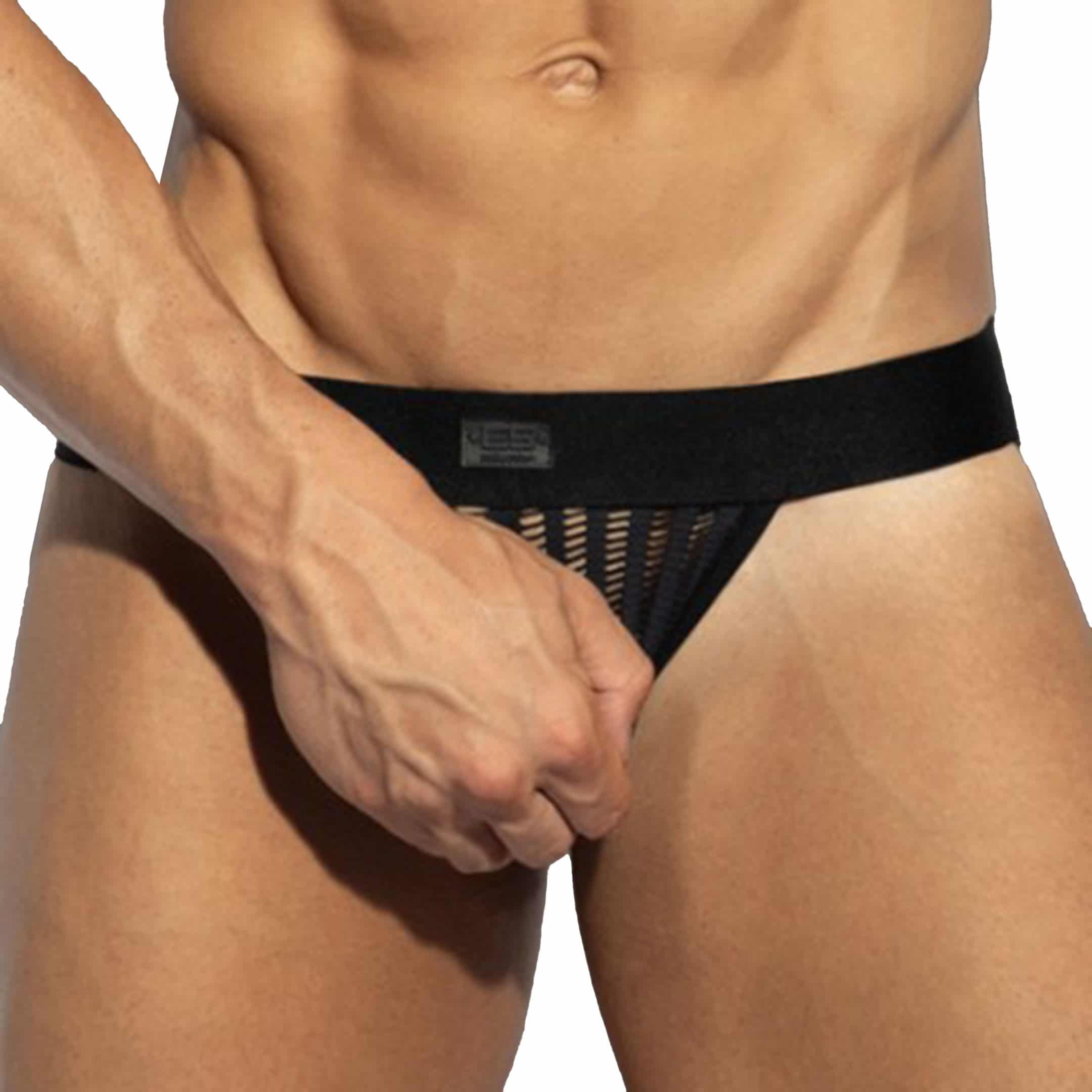 Jockstrap taille basse très sexy et confortable en résille à maillage large. Non doublé pour une grande transparence. Coupe minimaliste et très sexy. Logo ES Collection en silicone sur la ceinture élastique.