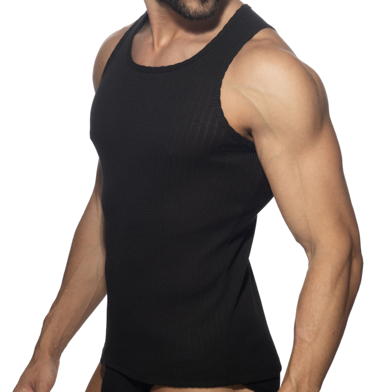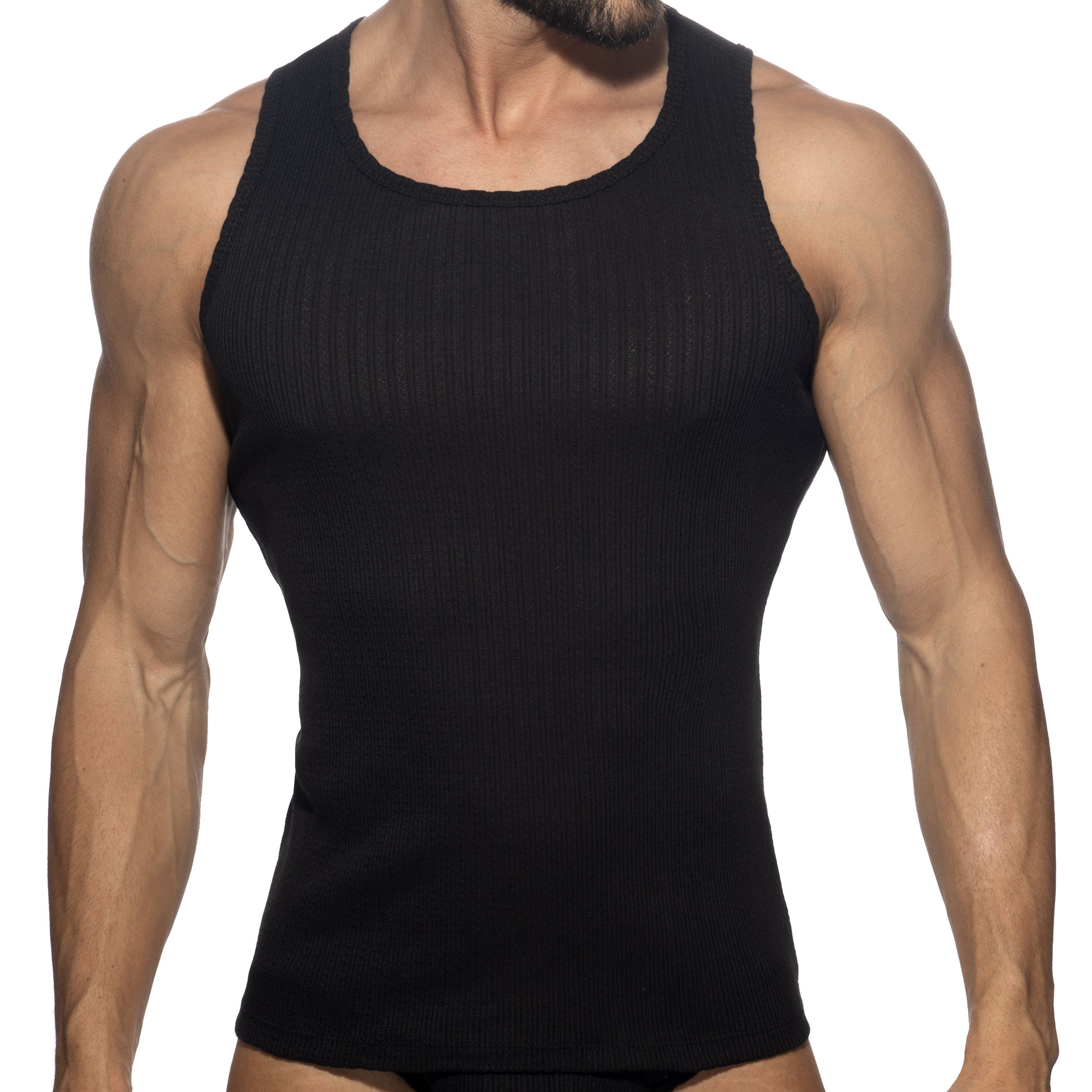 Débardeur confortable en mélange super doux et extensible de coton et de microfibre. Tissu chaud, côtelé et moelleux, conservant cependant une légère transparence. Coupe ajustée avec col rond. Logo AD en silicone dans le dos.