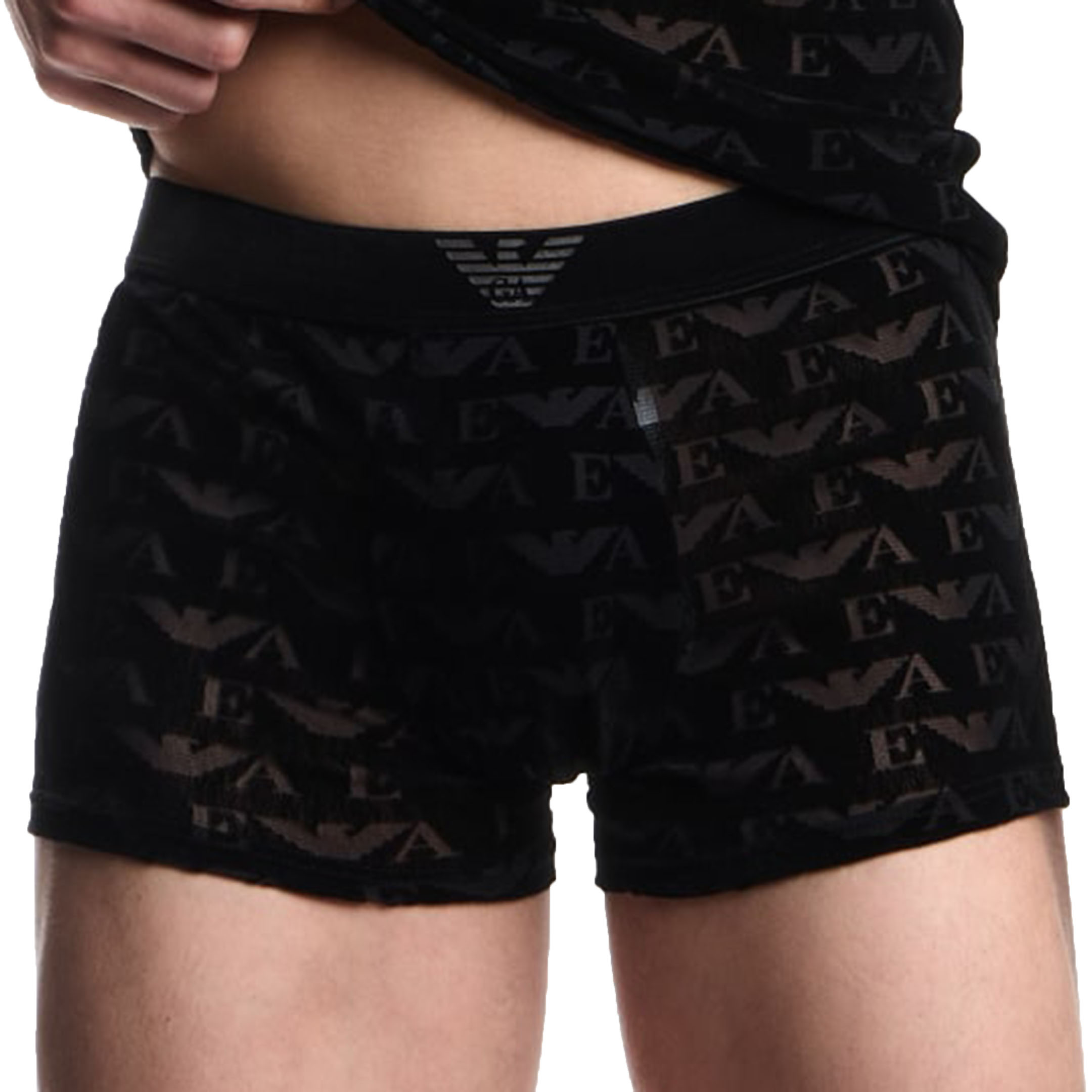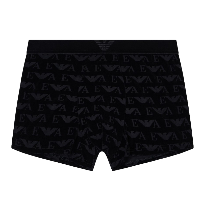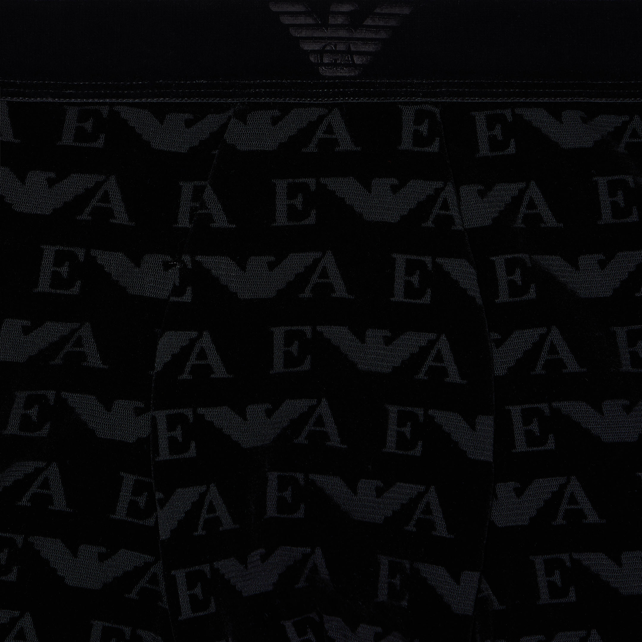 Boxer luxueux et élégant en velours dévoré orné de logos iconiques pour un subtil jeu de transparence. Coupe taille basse, simple et élégante. Poche frontale doublée. Ceinture élastique signée Emporio Armani. Edition spéciale Noël : livré dans une superbe boîte métallique noire.