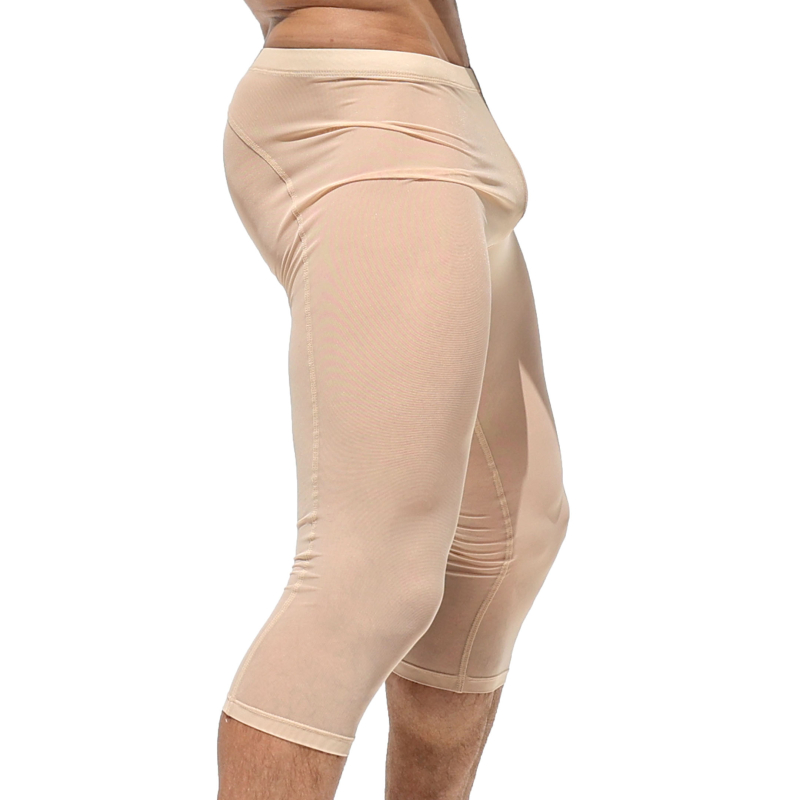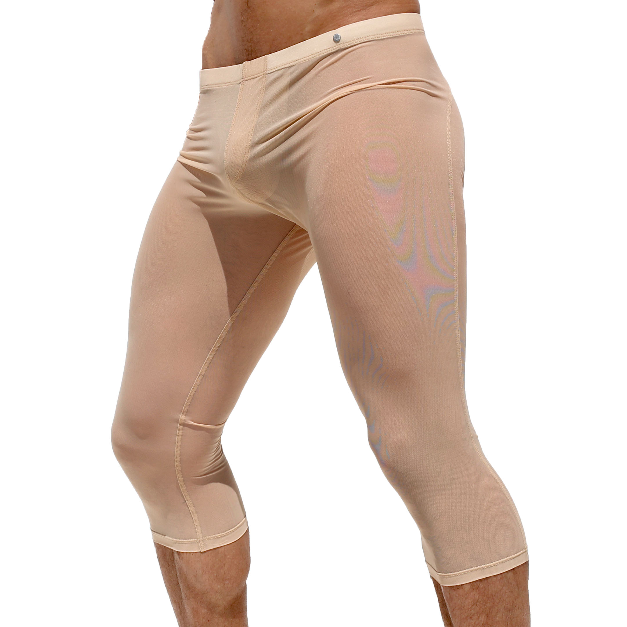 Legging 3/4 en résille extensible, fine et transparente. Les coutures incurvées à l'arrière - caractéristiques de la marque - mettent en valeur votre fessier. Braguette factice. Ceinture élastique recouverte agrémentée d'un rivet métallique signé Rufskin.