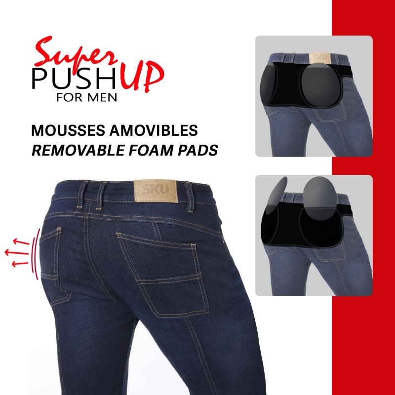 A pair of foam paddings (width 15 mm) is delivered with the butt enhancing jeans. You may add up to 2 other pairs in order to get an even more impressive effect. US size.