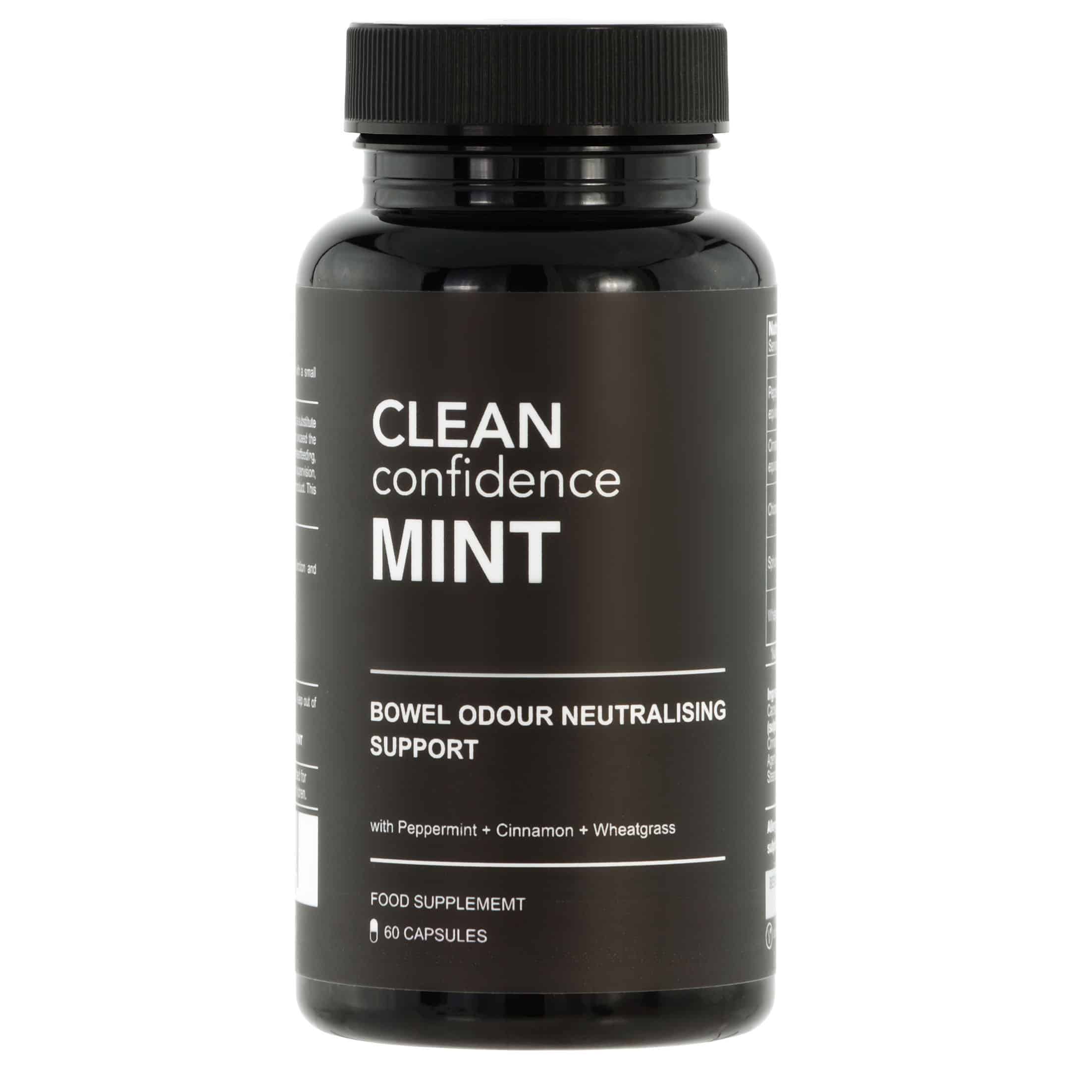 Promotes gut health, cleanliness and personal hygiene, with a focus on odor neutralization. As effective on flatulence smells as bad breath. 100% natural food supplement based on peppermint, cinnamon, wheatgrass, chlorella and spirulina. Take 2 capsules per day. Bottle of 60 capsules.