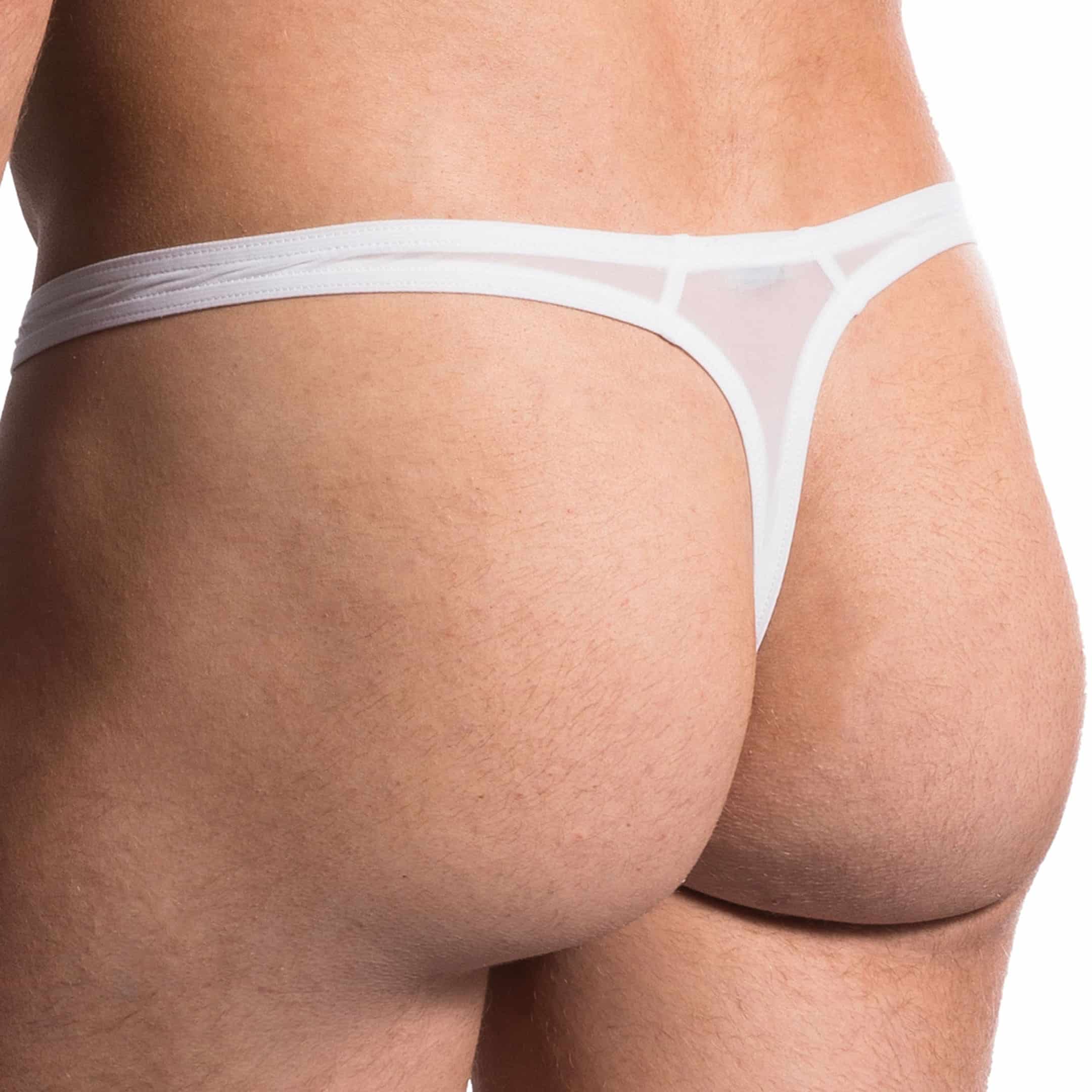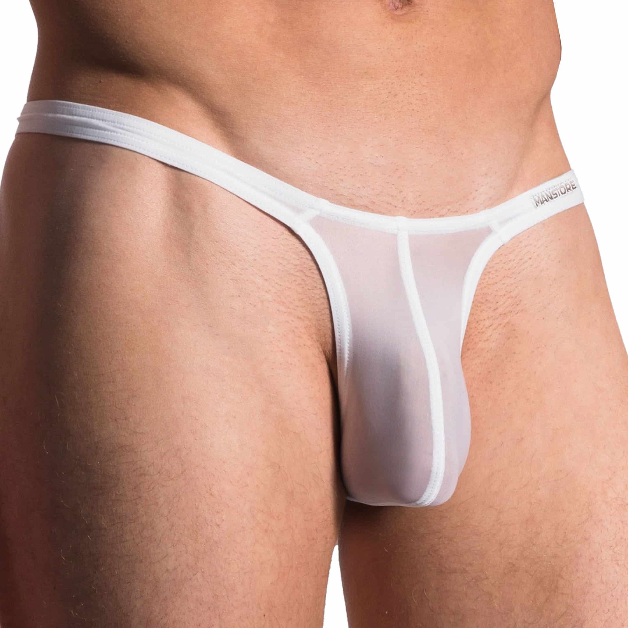 Very sexy thong made from transparent and stretchable microfiber. Very light, soft and comfortable fabric. Unlined contour pouch. Manstore label sewn on the left hip.