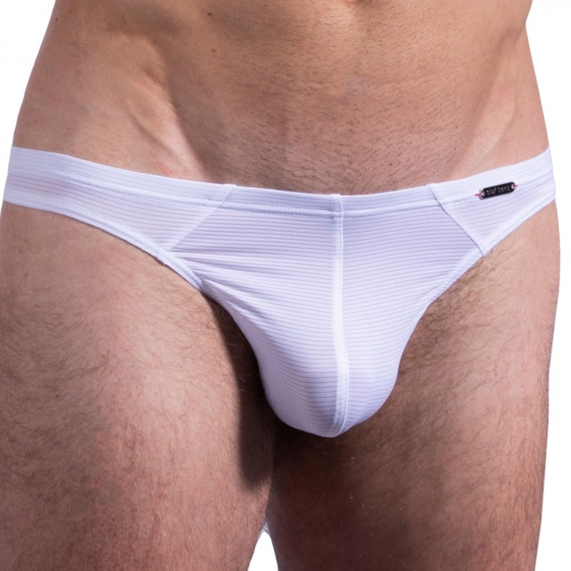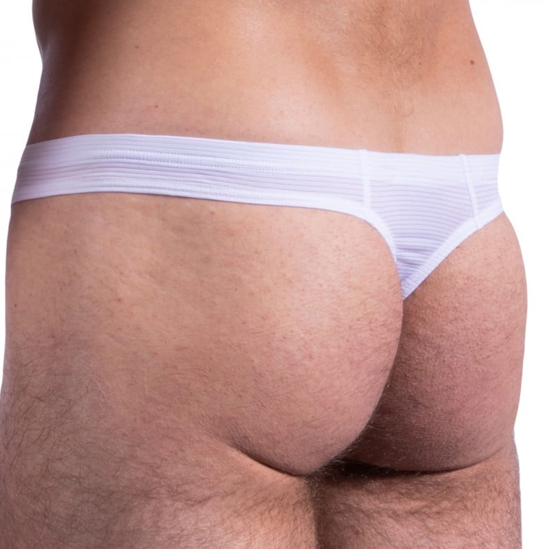 Thong made from light and soft microfiber. Very sexy alternation of transparent and opaque thin stripes. Super low mini cut.