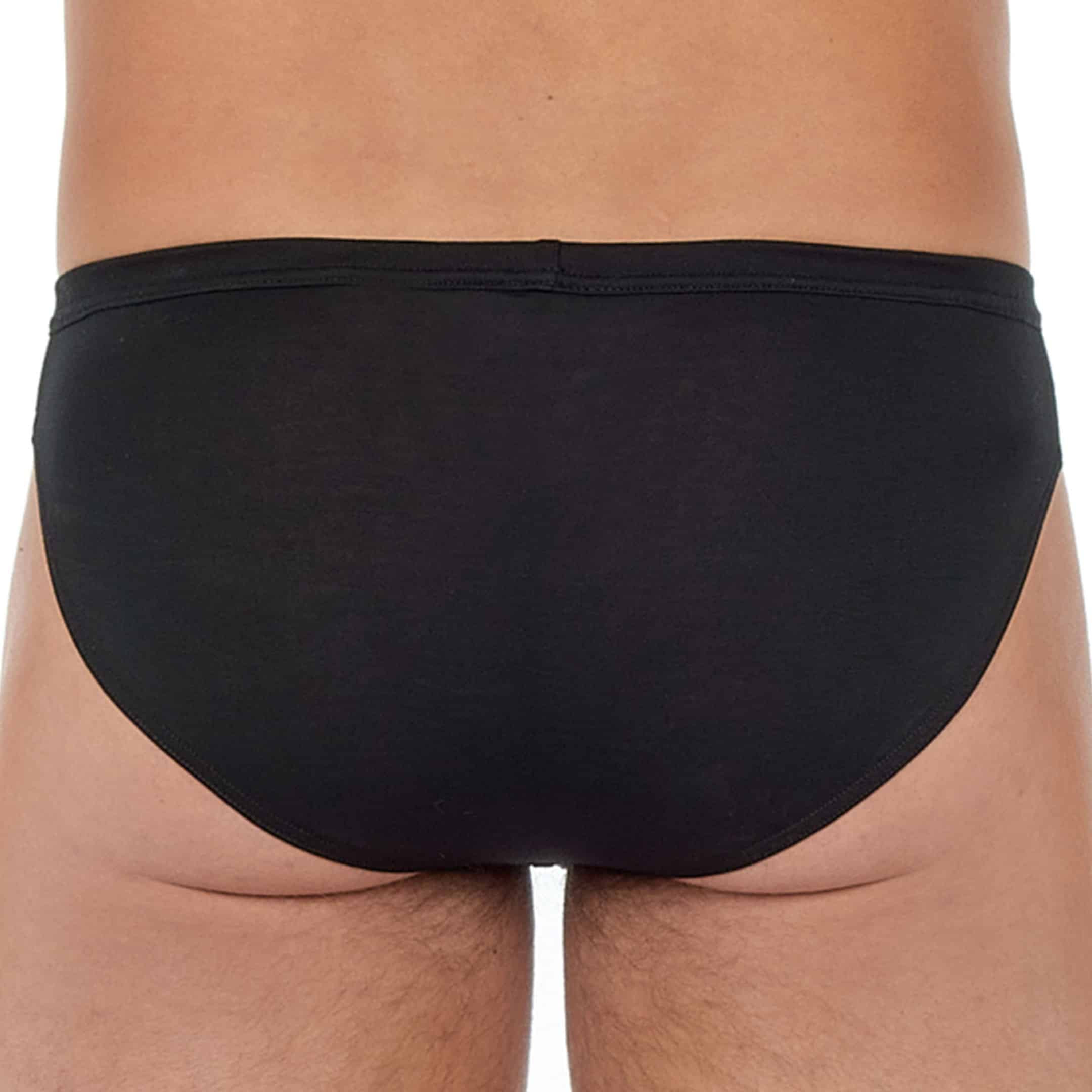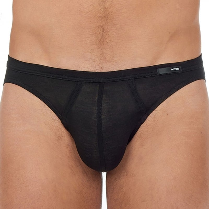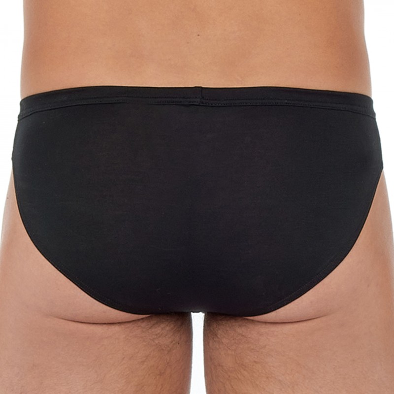 Brief made from vegetable silk, a very soft and comfotable natural fabric, Oeko-Tex certified. Super low mini cut. Unlined front pouch. HOM label sewn on the thin covered elastic waistband.