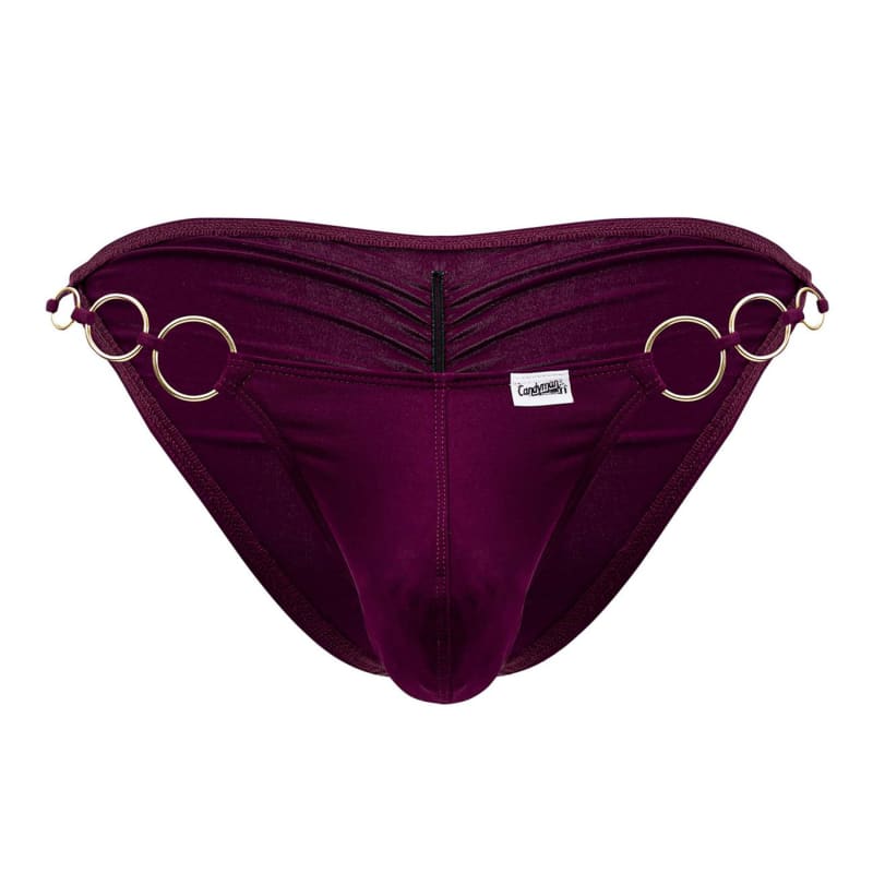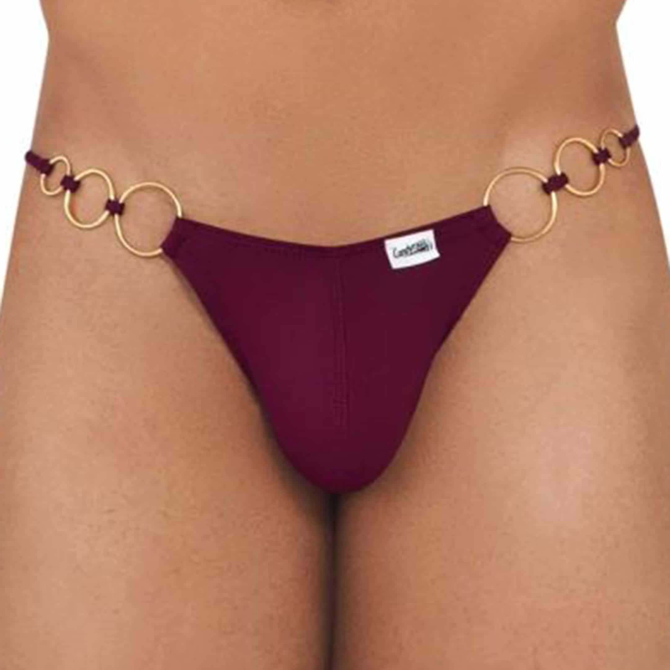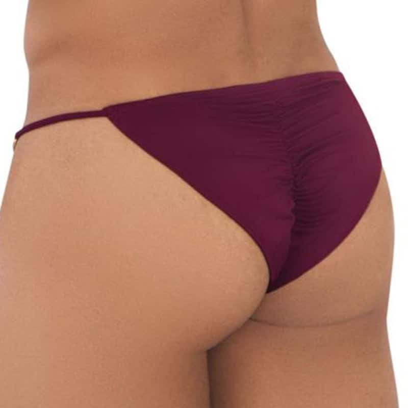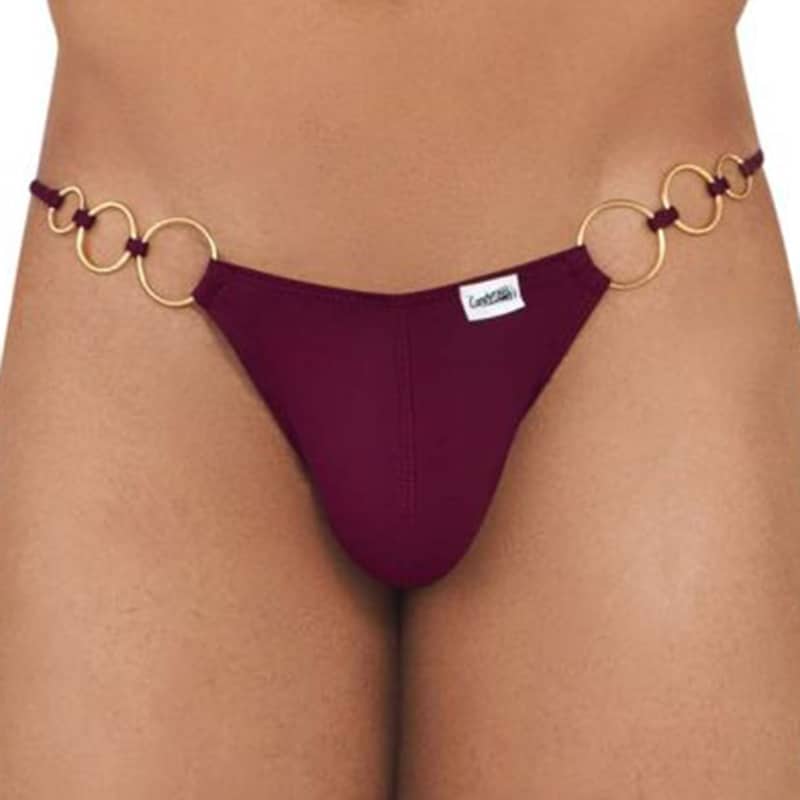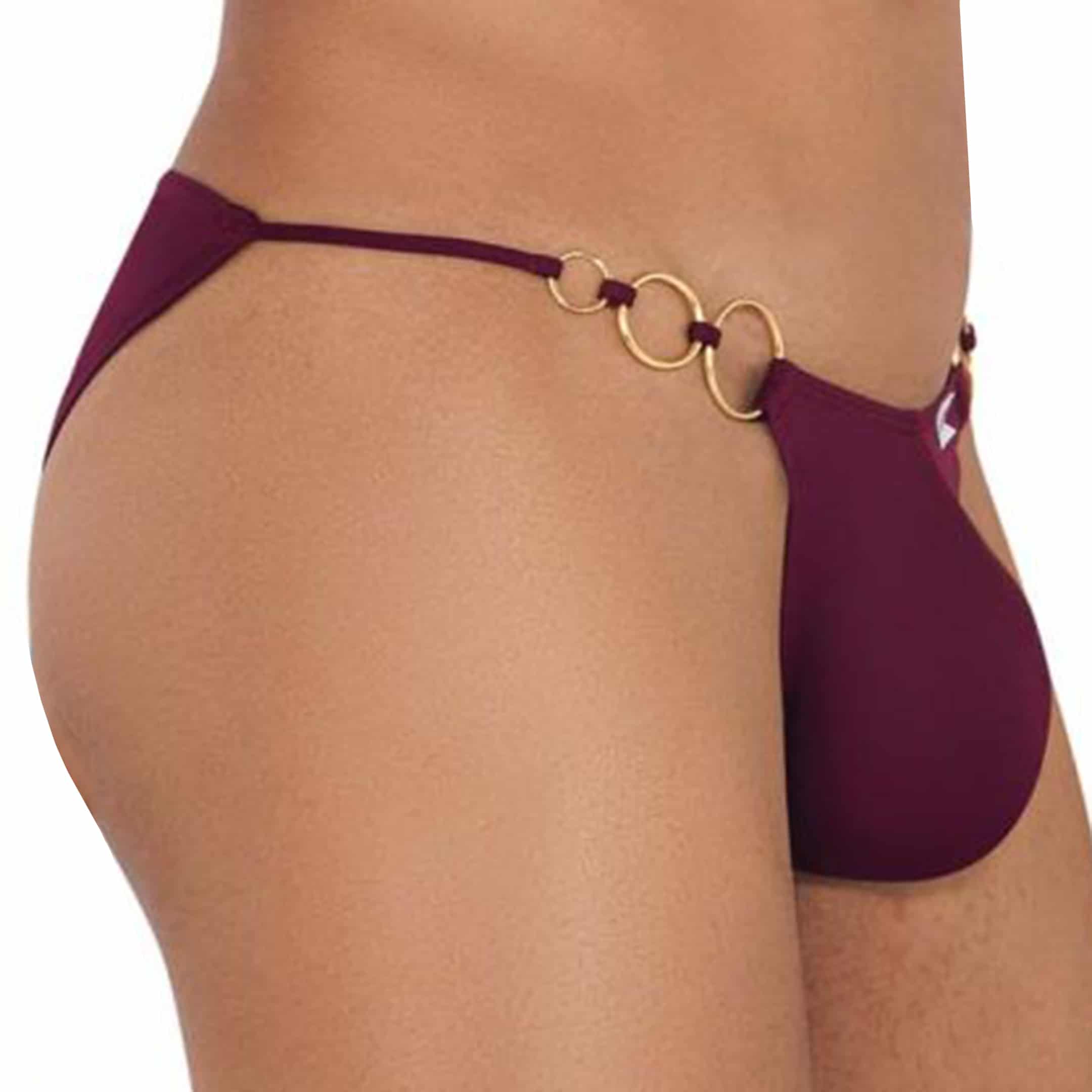 Sexy bikini brief made from stretch microfiber, as soft and smooth as a second skin. Minimalist design with low-rise waist and high-cut legs. Slim side straps linked by gold metal rings. Unlined front pouch.