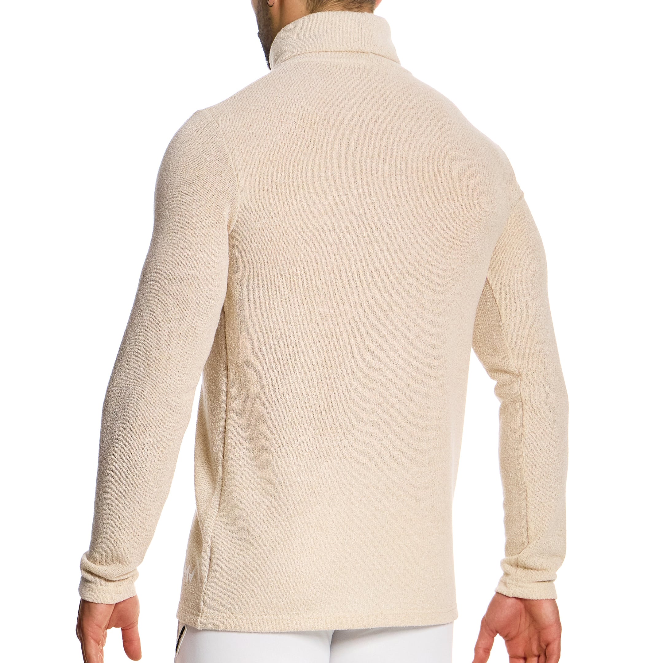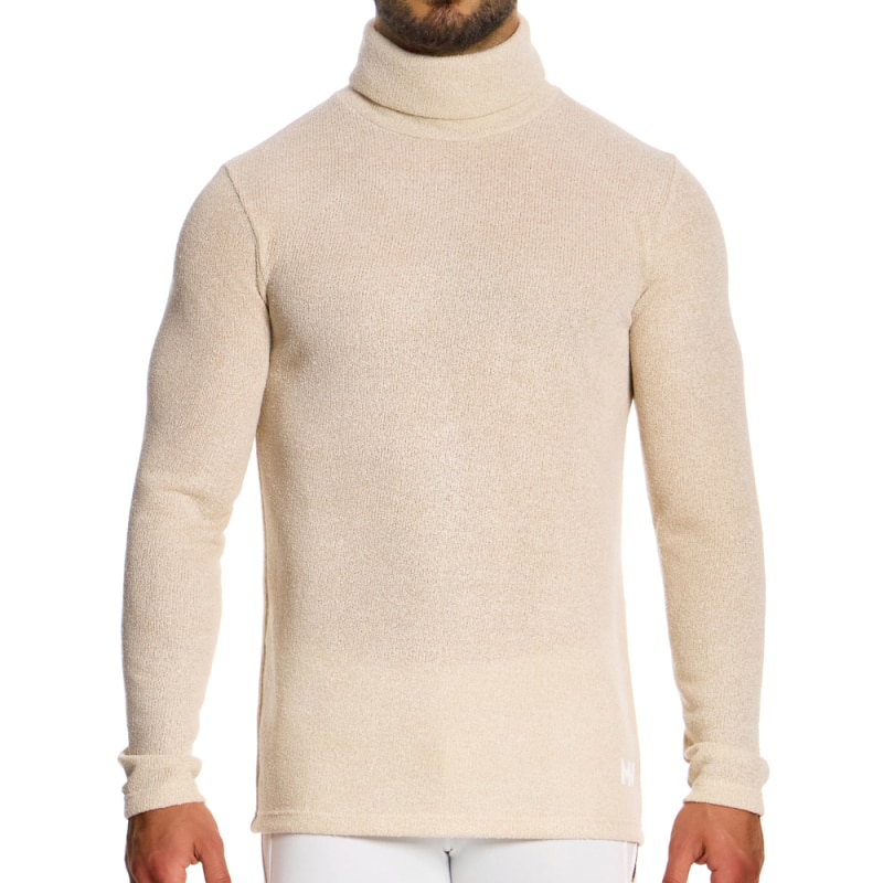 Simple, elegant minimalist t-shirt in smooth monochrome knitted fabric. Straight cut. Long sleeves and turtleneck. MV logo on left hip.