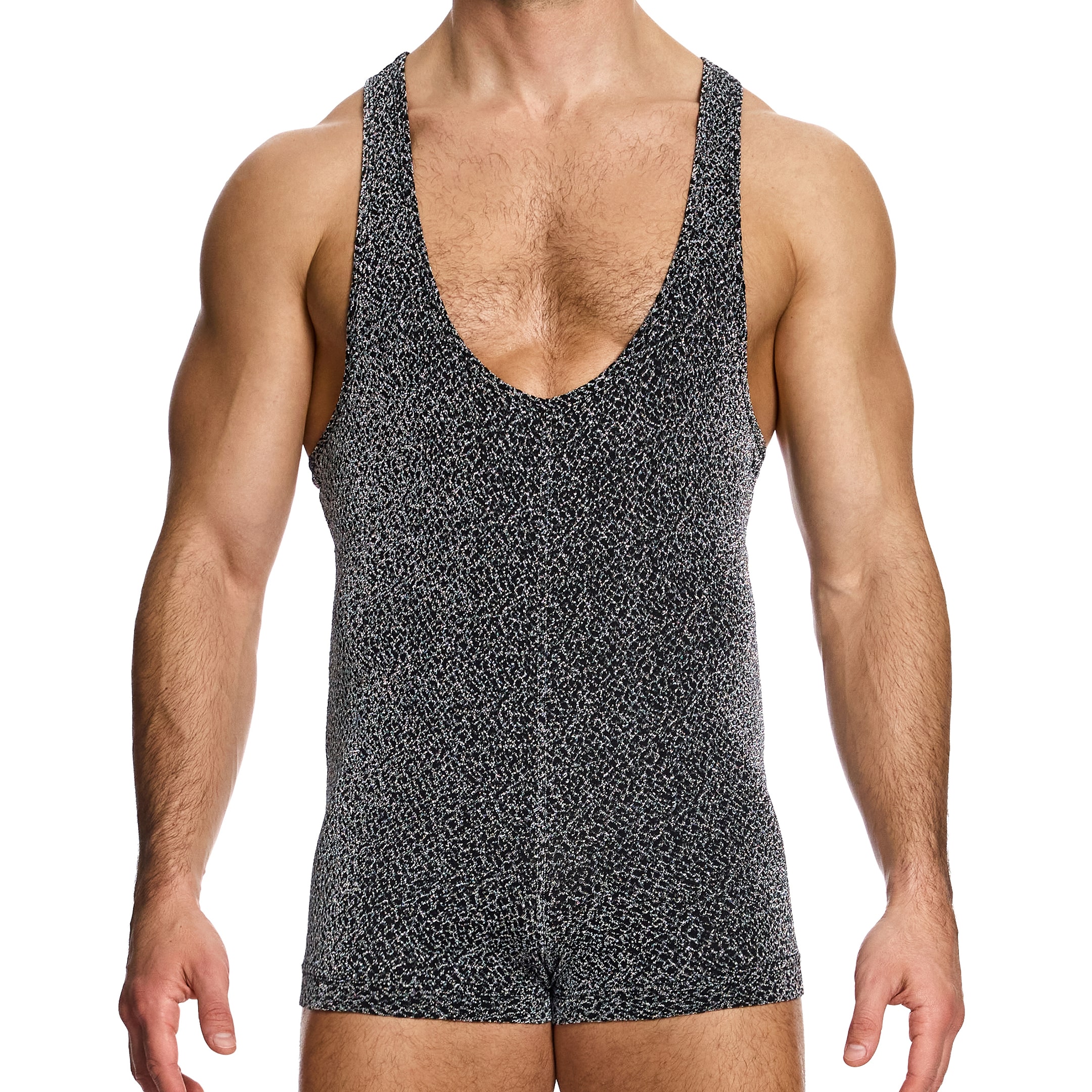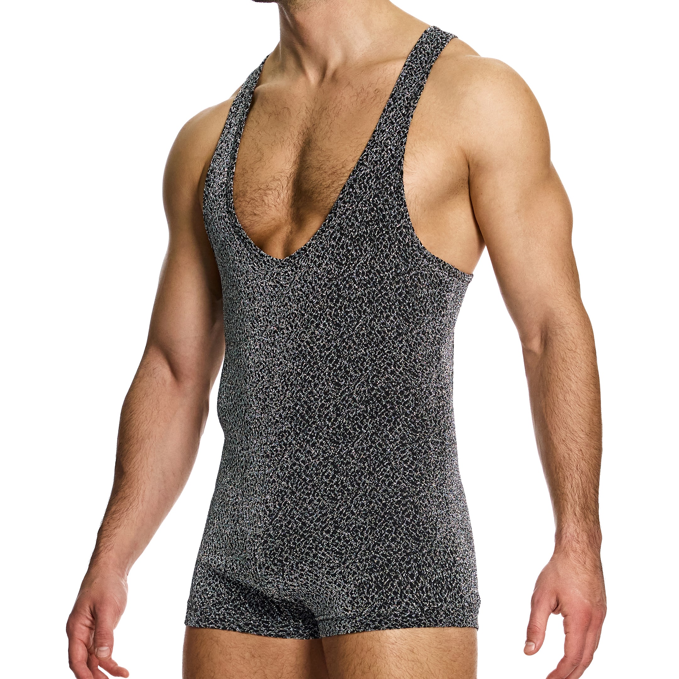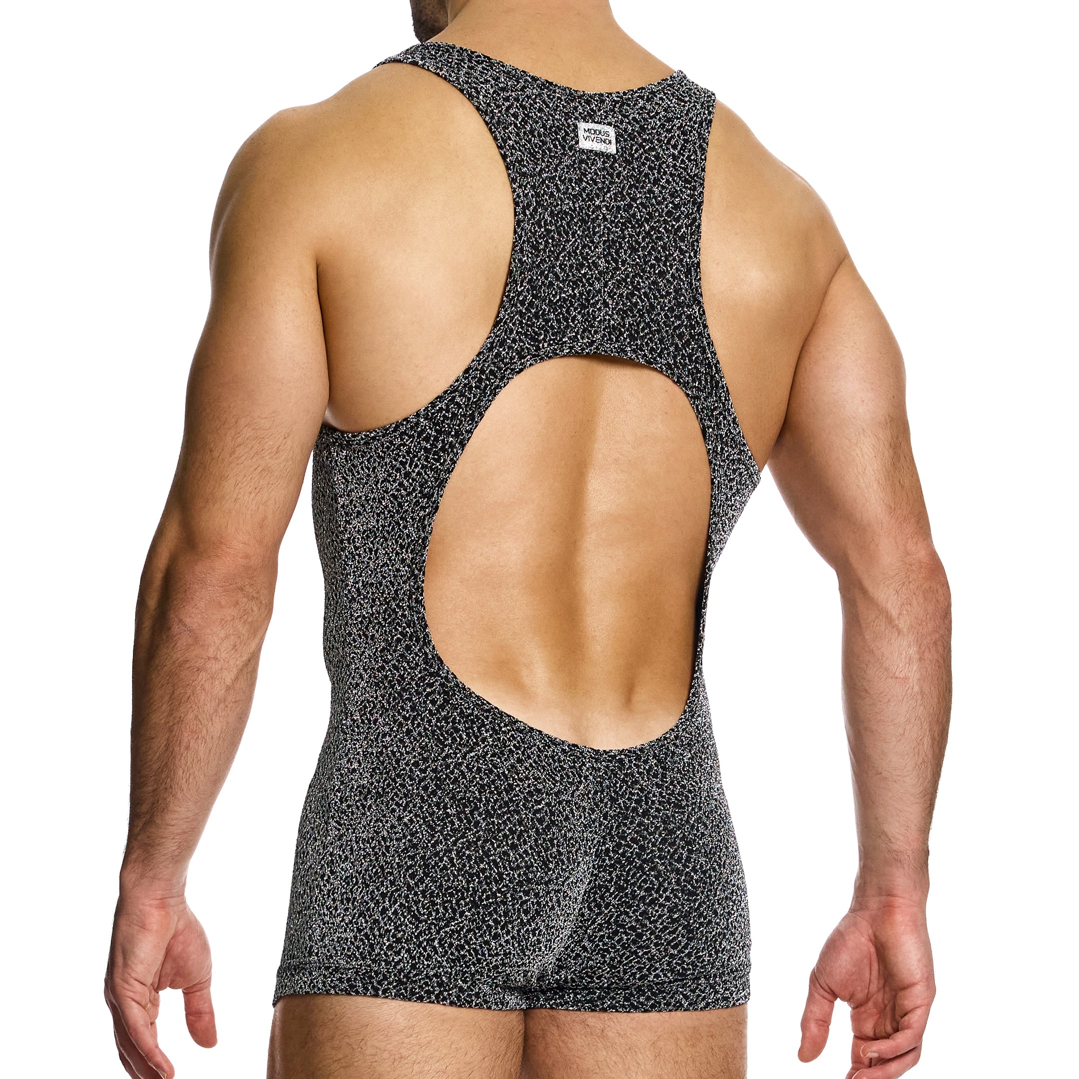 Glamorous bodysuit in knitted microfiber with Lurex threads for a shiny metallic look. Original cut-out revealing your back. Modus Vivendi metallic label on top of the back.