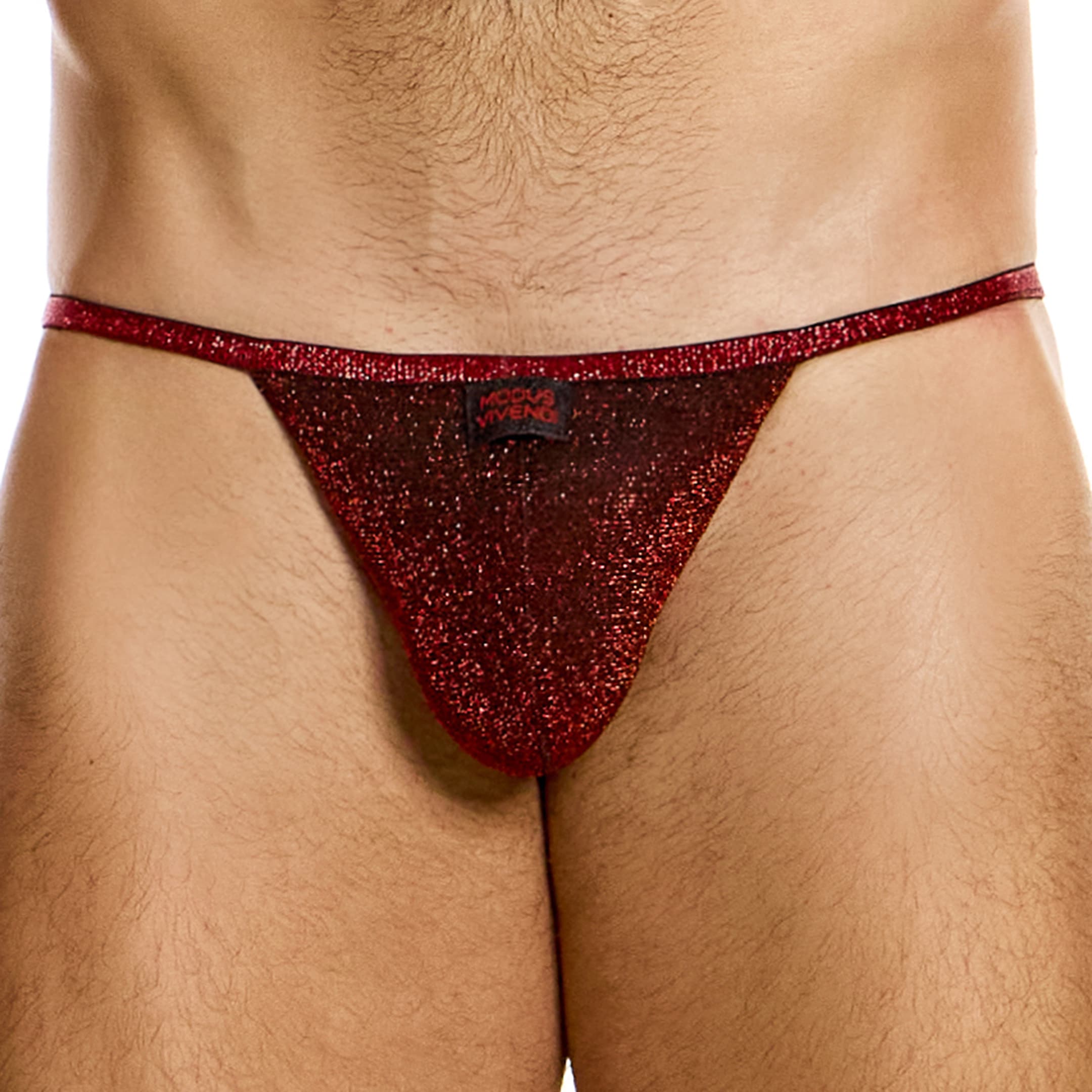 Glamorous brief in knitted microfiber with Lurex threads for a shiny metallic look. Low-rise tanga cut. Sparkling elastic waistband.