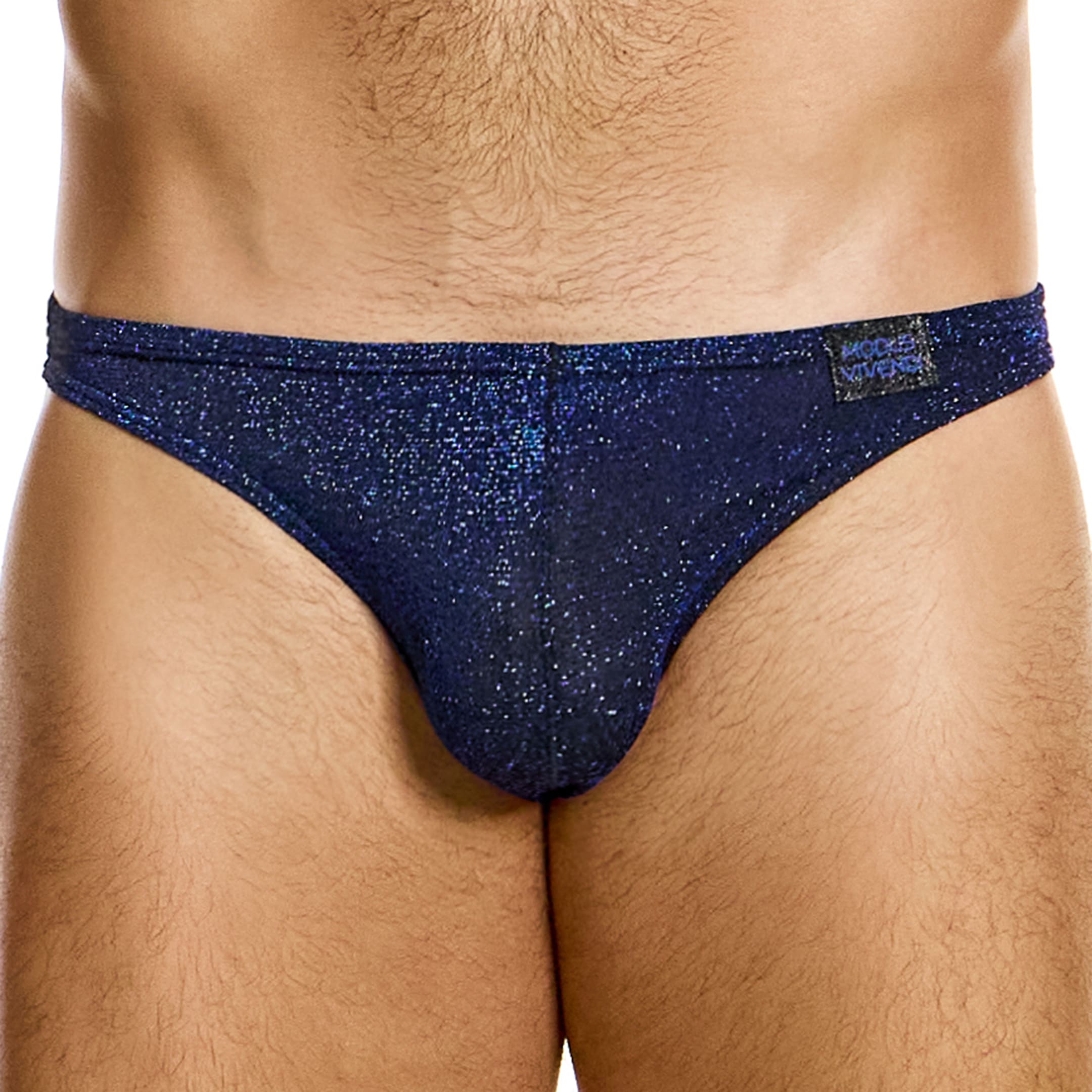 Glamorous brief in knitted microfiber with Lurex threads for a shiny metallic look. Low-rise mini cut. Sparkling elastic waistband.