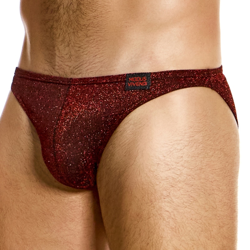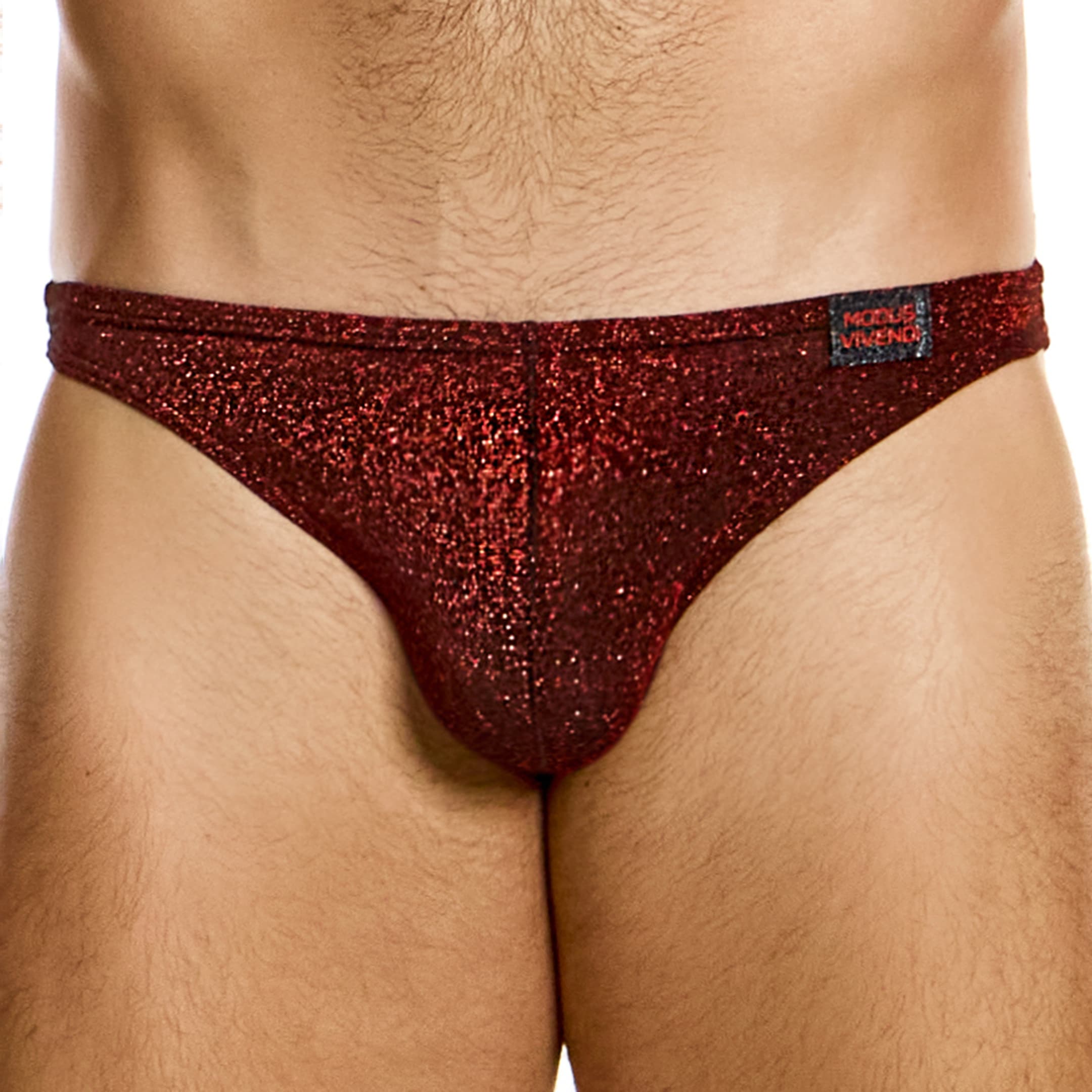 Glamorous brief in knitted microfiber with Lurex threads for a shiny metallic look. Low-rise mini cut. Sparkling elastic waistband.