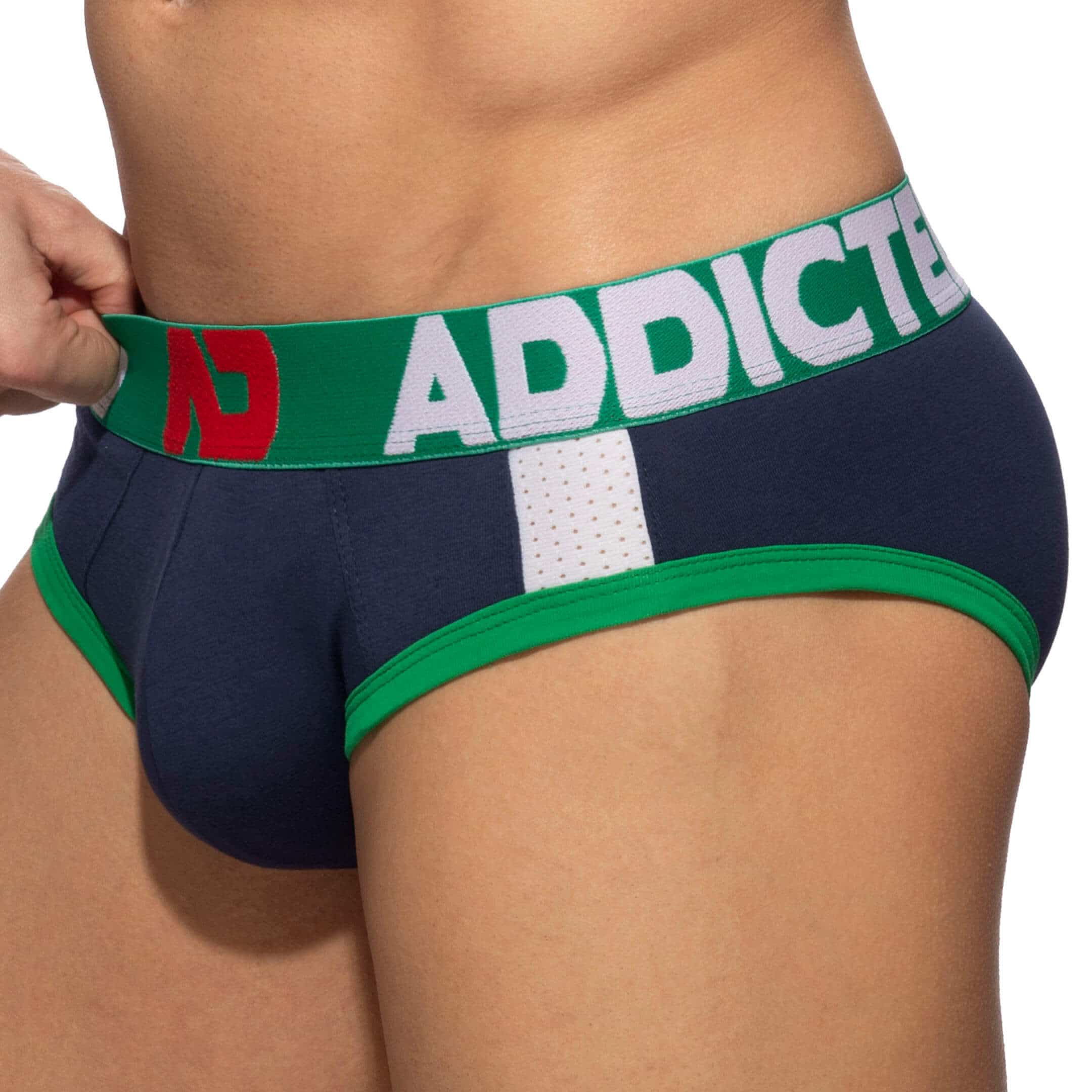 Low-rise sporty brief made from soft and comfortable cotton. Contrast side stripe in breathable mesh. Removable Pack Up foam system to enhance your masculinity. Wide elastic waistband in jacquard.