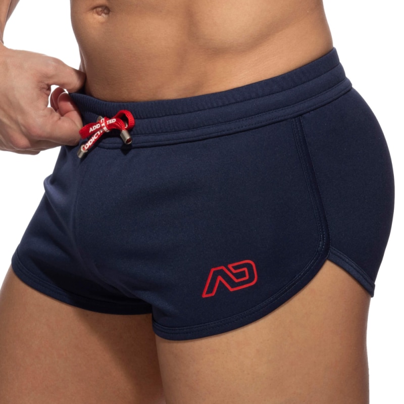 Sporty, sexy short made from lightweight and breathable microfiber. Tight-fitting and low-rise mini cut. Kango pouch for a great support and comfort. Beautiful side notch. Elasticated waistband with drawstring. Contrasting AD logo on left thigh.