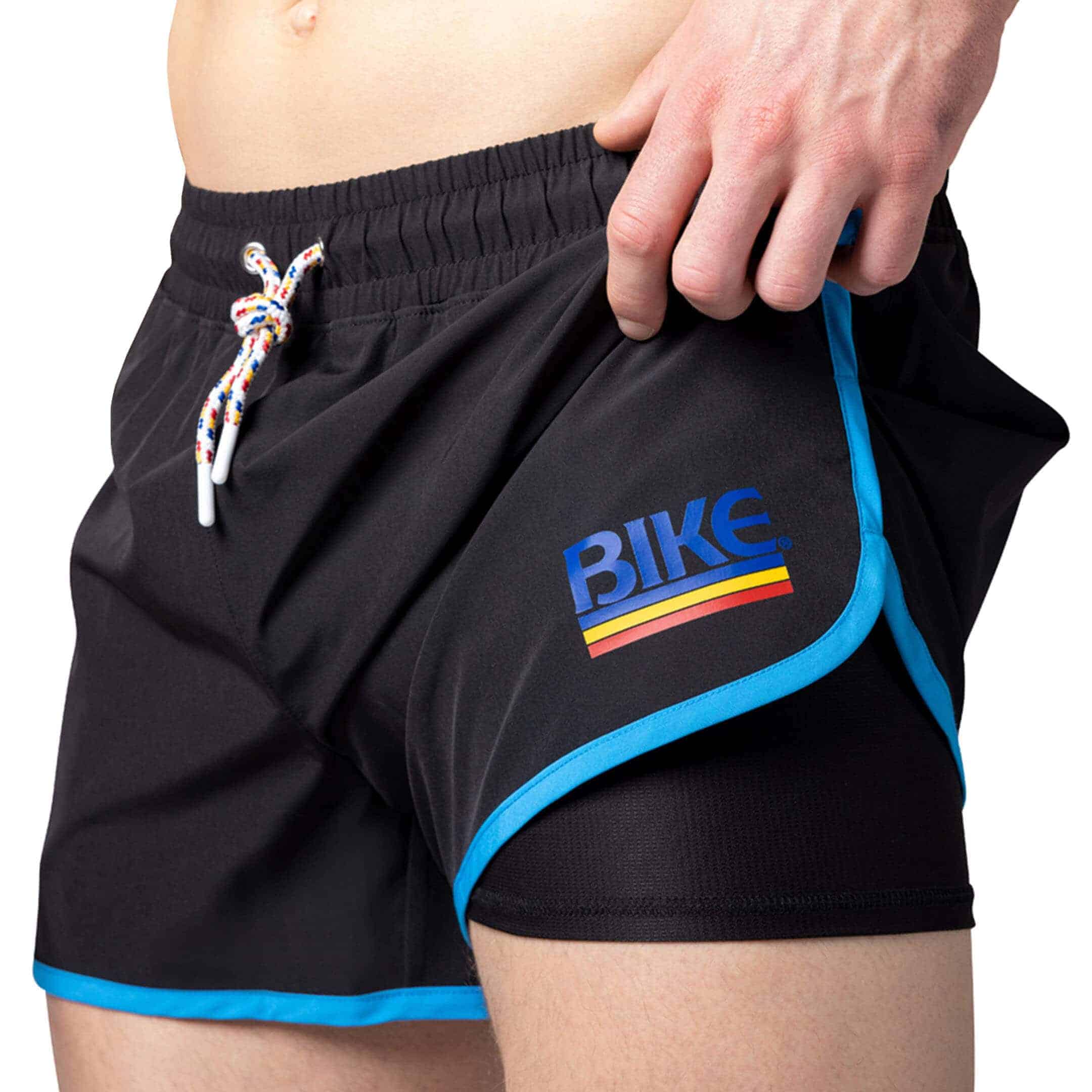 Athletic short made from 4-way stretch microfiber. Quick-drying and moisture-wicking fabric to help you get through your most challenging workouts. Soft inner boxer-brief liner provides ultimate comfort and support. 3 pockets. Elastic waistband with drawstring. BIKE logo on left leg. Contrast coloured edging.